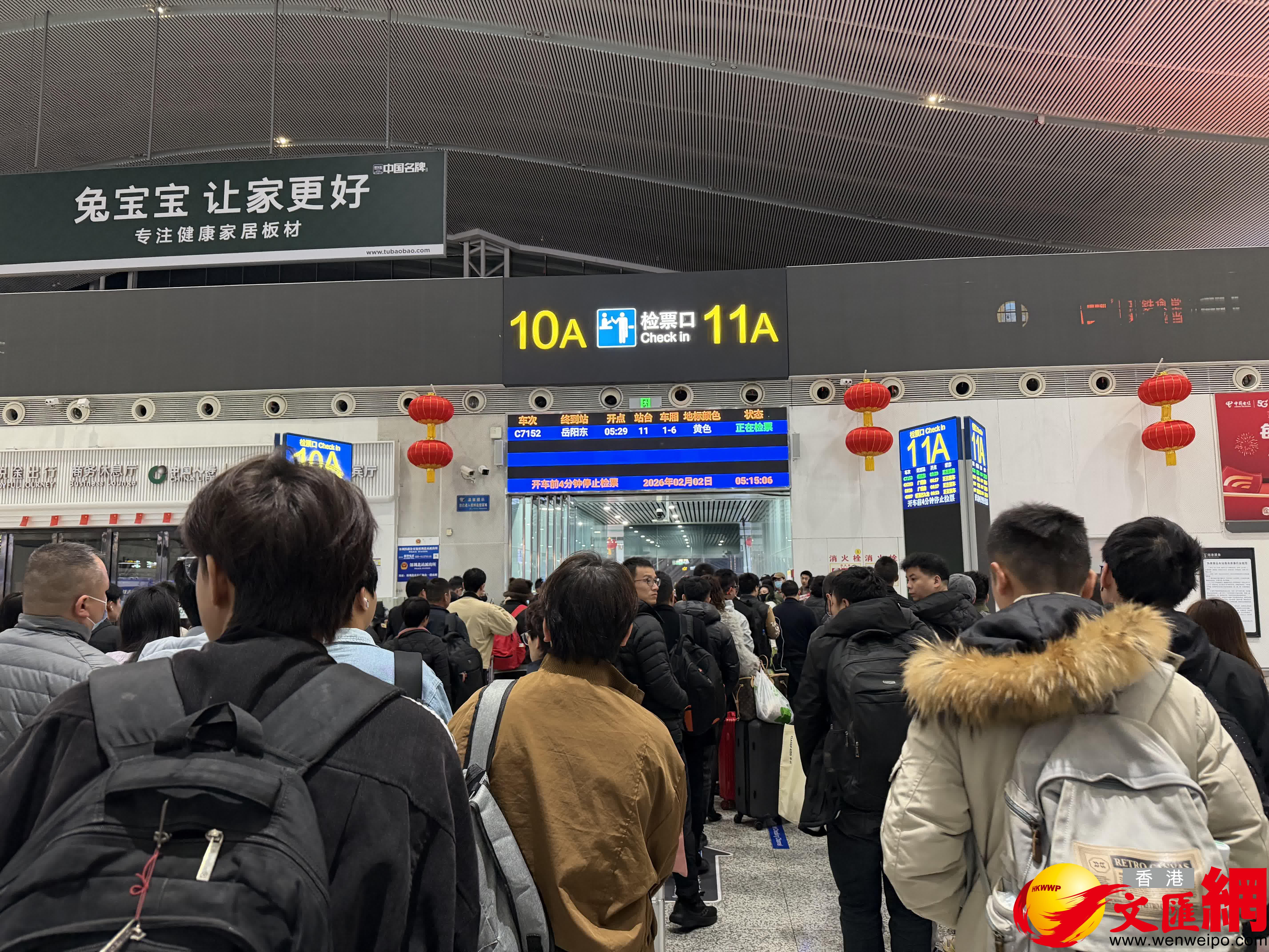 (香港文匯網記者郭若溪 通訊員 馬鑫宇 李丹)2月2日5時29分,C7152次列車緩緩駛離深圳北站,開往岳陽方向,這是2026年春運深圳北站開出的首趟旅客列車,同時也意味着2026年深圳鐵路春運正式啟動。