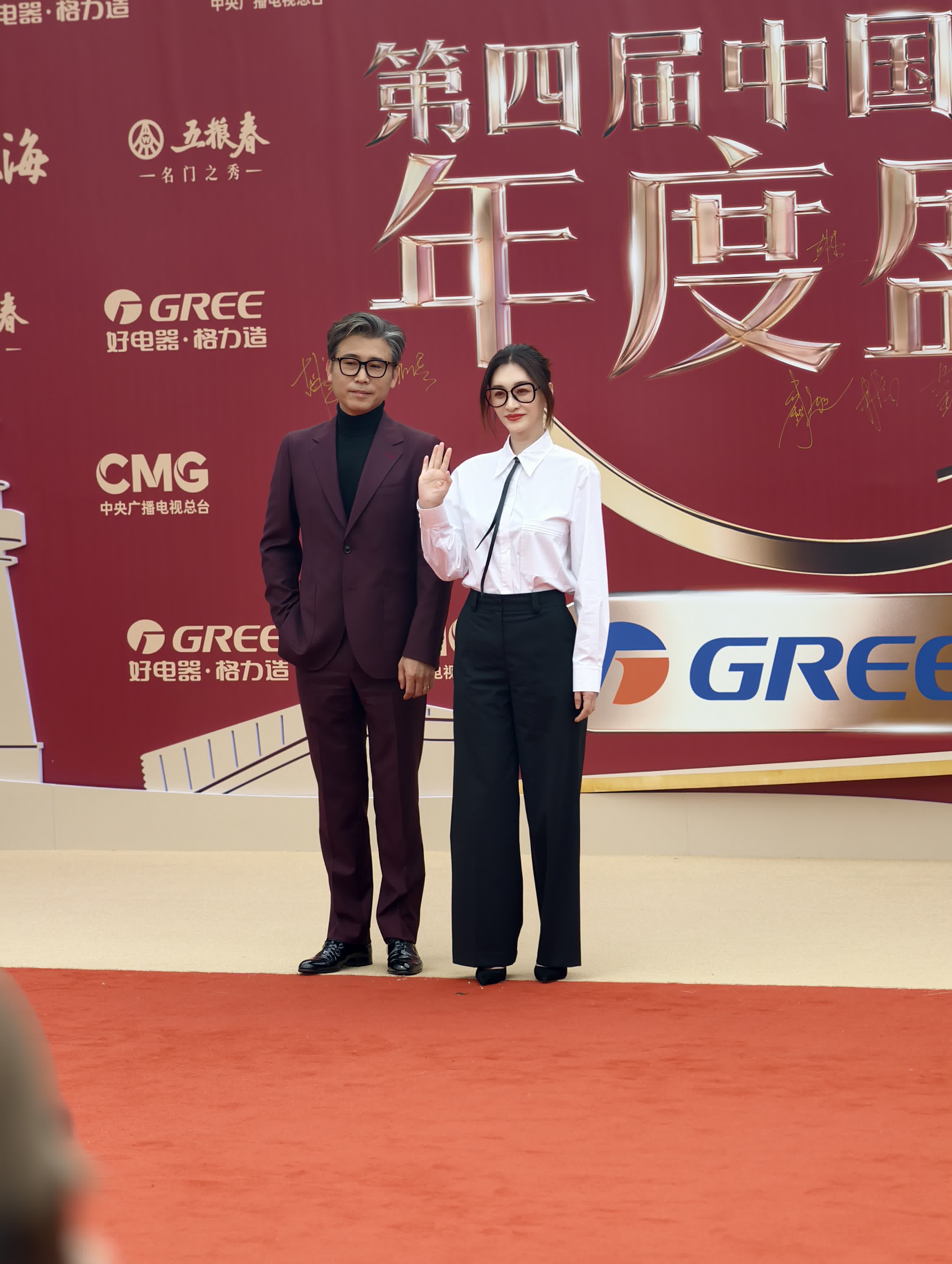 梅婷首次擔綱主持,身着黑西裝配不規則紗裙,大氣明媚,舉止從容。李小冉則以白襯衫配西裝褲及黑框眼鏡亮
