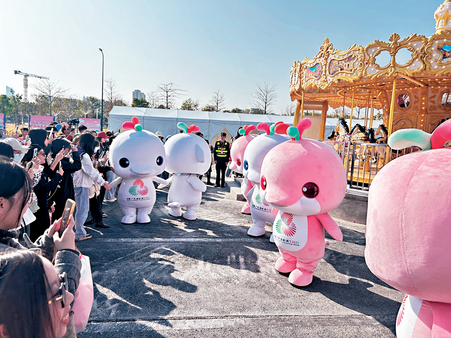 香港文匯報訊(記者 敖敏輝 廣州報道)「大灣區奧體嘉年華」明日(4日)在廣州開幕,當中匯聚人偶互動、國際馬戲、十五運文化展示、機動遊戲與文創市集等多元業態,其中被網友稱為「大灣雞」的十五運會和殘特奧會吉祥物「喜洋洋」、「樂融融」更會進駐會場,打造全齡段適玩的新春潮玩地標。