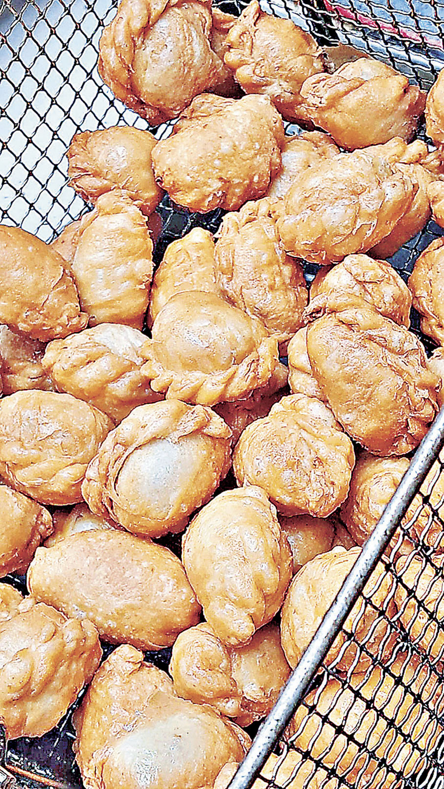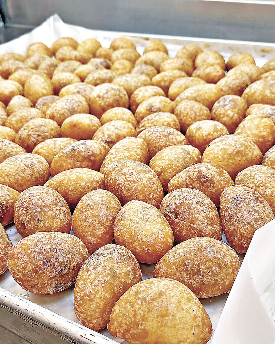 花生酥角、蛋散、糖環、芋蝦、九江煎堆、笑口棗等油器品類齊全,當中限定的豆沙角更是剛出爐就遭一掃而空。豆沙角外皮由糯米粉製成,內裏選用香甜綿滑的紅豆沙餡,經過炸製後,脹卜卜的造型形似荷包,新年寓意財源廣進、金銀滿屋。而生隆餅家出品的豆沙角與別家都不同,師傅在紅豆沙餡的分量上作了取捨,豆沙角的內部因為留有一部分空間而自然鼓起,形似一顆雞蛋,圓潤飽滿,十分好看。雖然達不到爆餡的程度,但也正好與油炸的糯米外皮中和,達到甜而不膩,令人食過翻尋味。