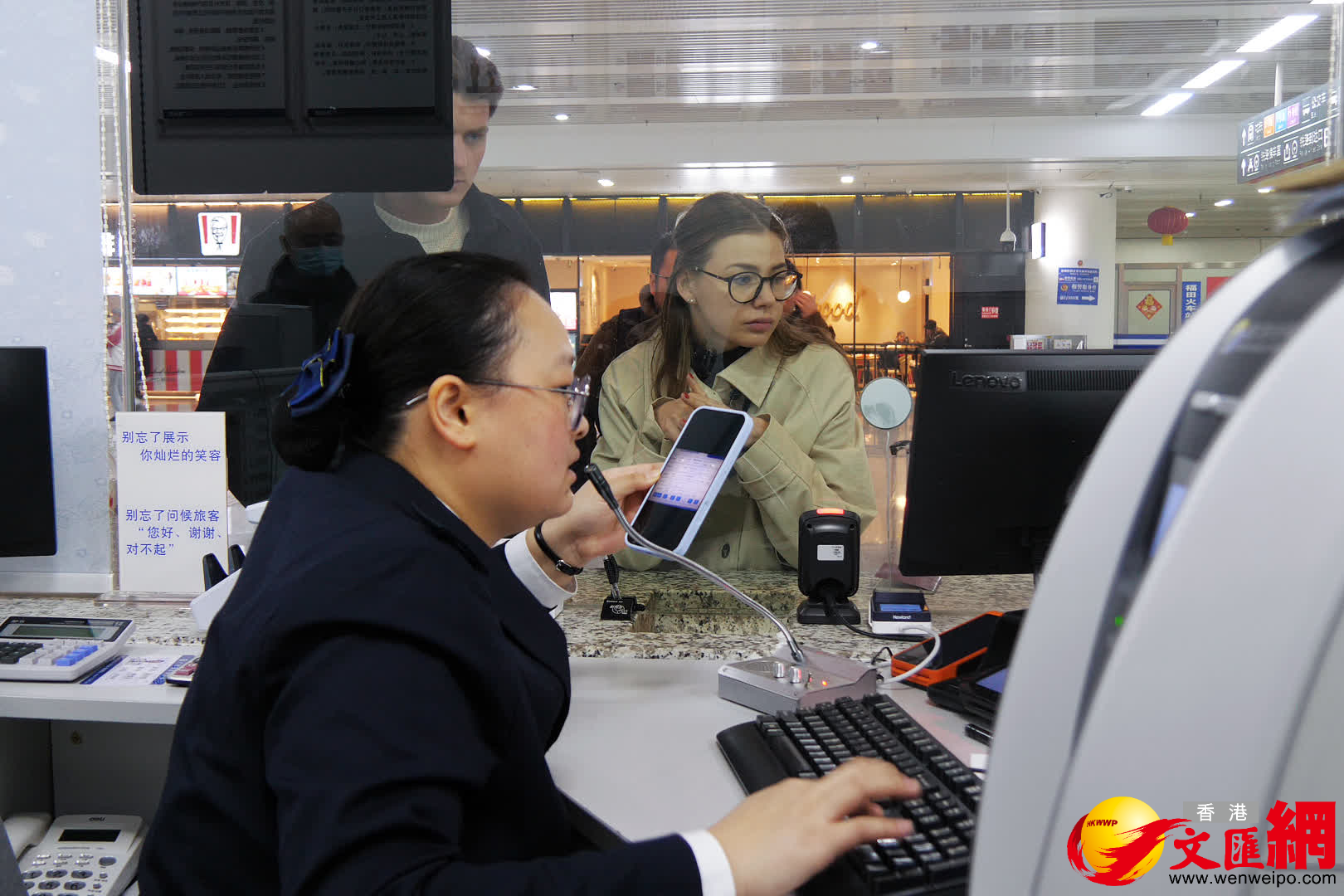 售票員馮文雅是車站的「語言擔當」,能熟練使用粵語、英語、日語等。她發現許多香港老人不了解12306購票,每次都耐心引導幫助。「凡是境外旅客,我都會特別提醒他們提前30分鐘候車。」這個小小的提示,讓許多旅客避免了誤車的情況。