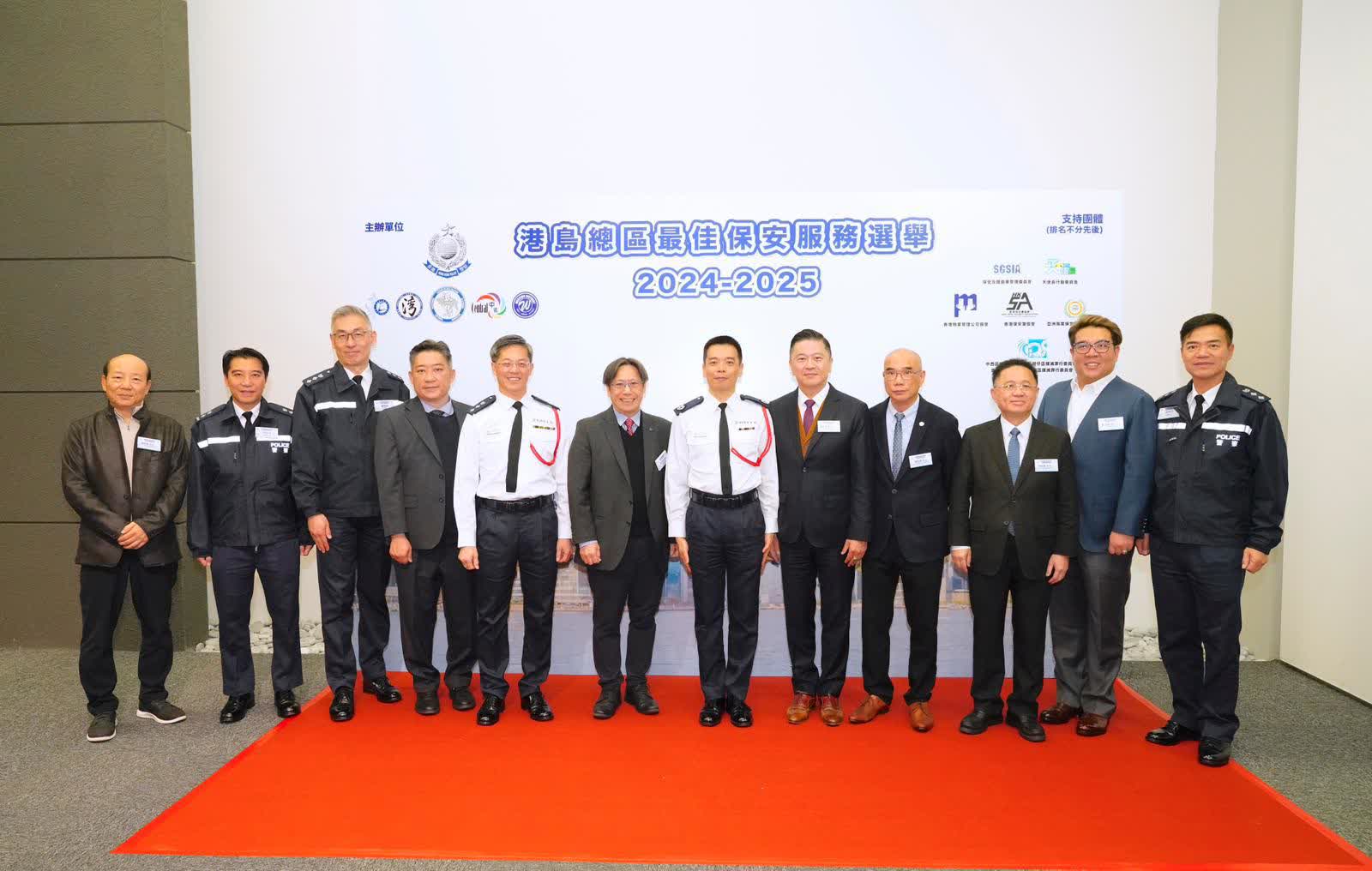 港島總區指揮官區永樑致辭時,讚揚保安人員具備高度應變能力及專業態度,在協助警方防範和偵破罪案方面不遺餘力。本年度「十大最佳保安員」冠軍由置富花園居民協會的保安員奪得。該保安員在一宗火警事件中盡忠職守,指揮疏散居民,更親身將一名行動不便的伯伯背負落樓,充分展現英勇無懼的專業精神。