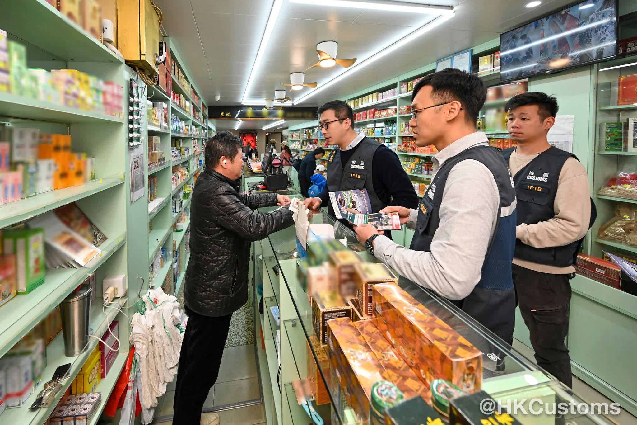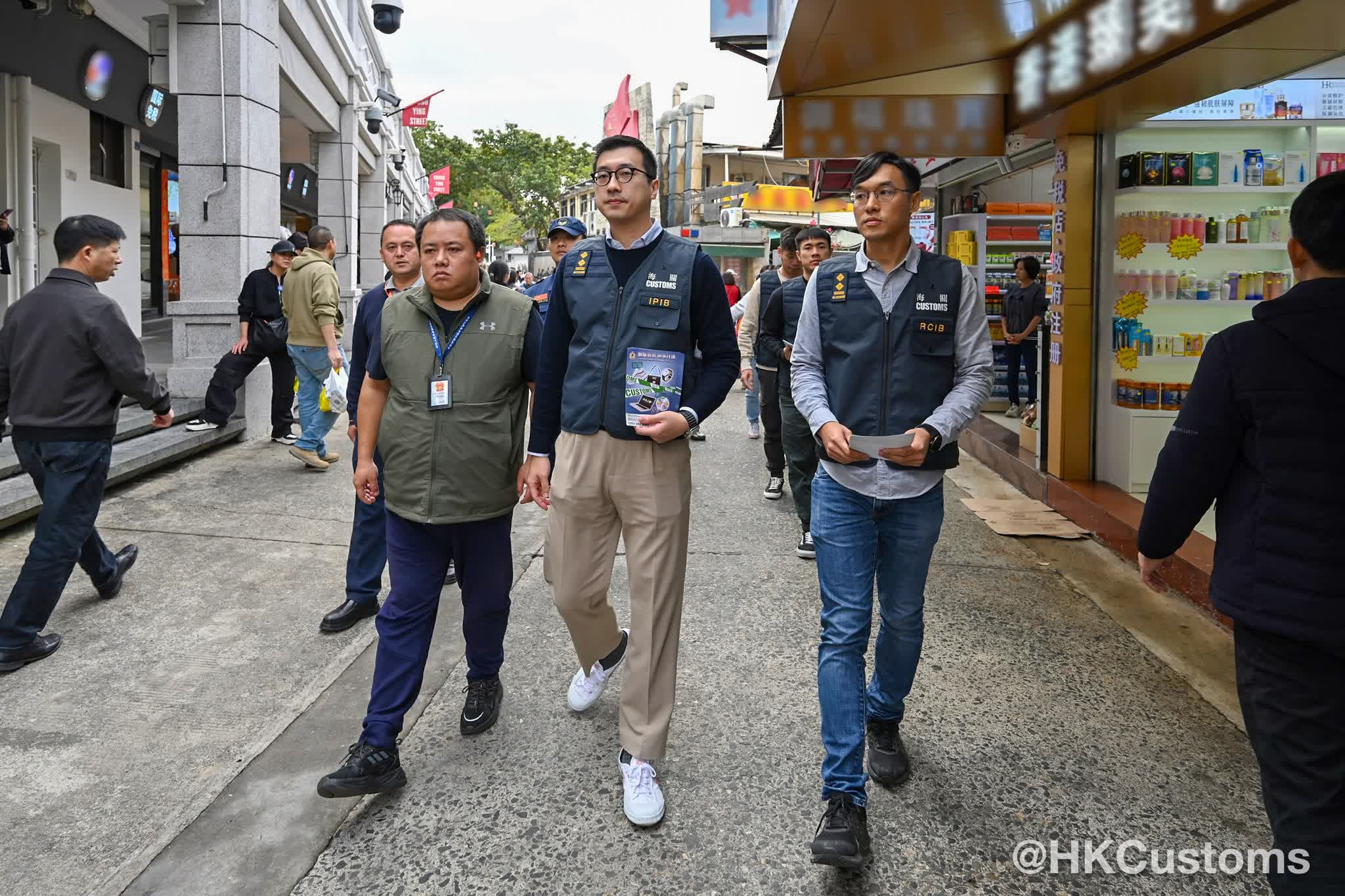 香港文匯報訊(記者 蕭景源)農曆新年前夕,香港海關聯同中英街管理局今日(3日)展開聯合巡邏行動,防範和打擊違法行為,確保市場秩序。海關人員並向商戶派發單張,提醒他們遵守《商品說明條例》及新修訂的《應課稅品條例》,切勿售賣冒牌物品或私煙。