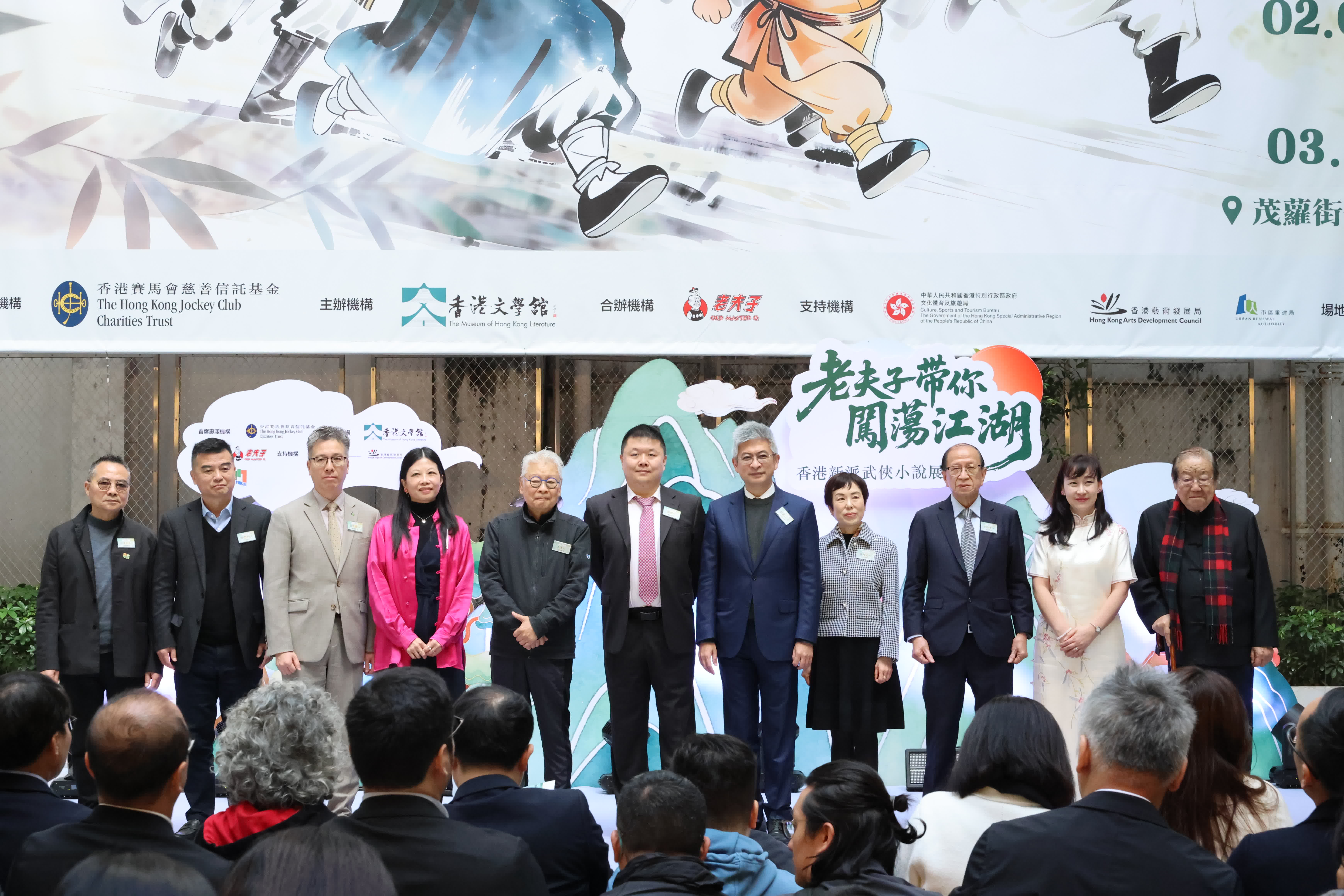 香港文學舘羅光萍舘長致辭表示,是次展覽以香港家喻戶曉的文化語言「老夫子」為引,通過多元展陳、互動體驗及專題講座等形式,推動文學與當代生活的對話,連接不同世代、促進文化共鳴。她亦希望公眾能在輕鬆趣味的觀展過程中,逐步領略香港新派武俠小說的發展脈絡、文本特色及名家風采。