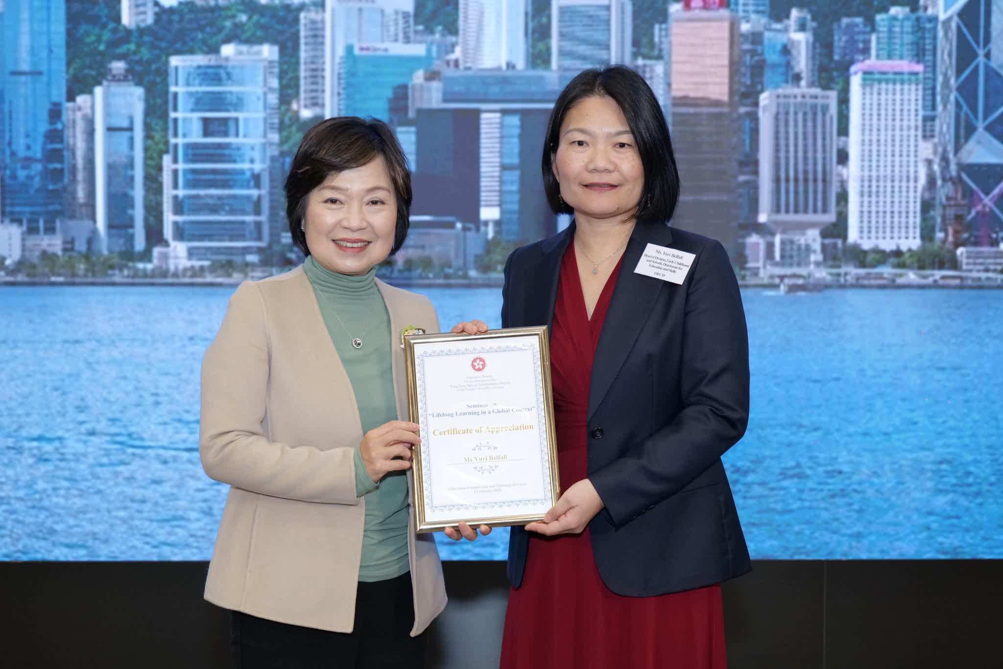 她又引述,Belfali在研討會上與侯傑泰教授的座談中特別提到,香港的教育系統持續進步,致力為年輕人和未來世代創造發展機會,以應對不斷變化的挑戰。學生的學術表現持續卓越,印證了學校和教師的教學成效。香港在教育平等方面的突出表現,反映香港多元而穩定的教育體系,能有效且公平分配教育資源與學習機會,為不同家庭背景學生的終身學習奠定了堅實基礎,讓所有學生都能成為面向未來的終身學習者。