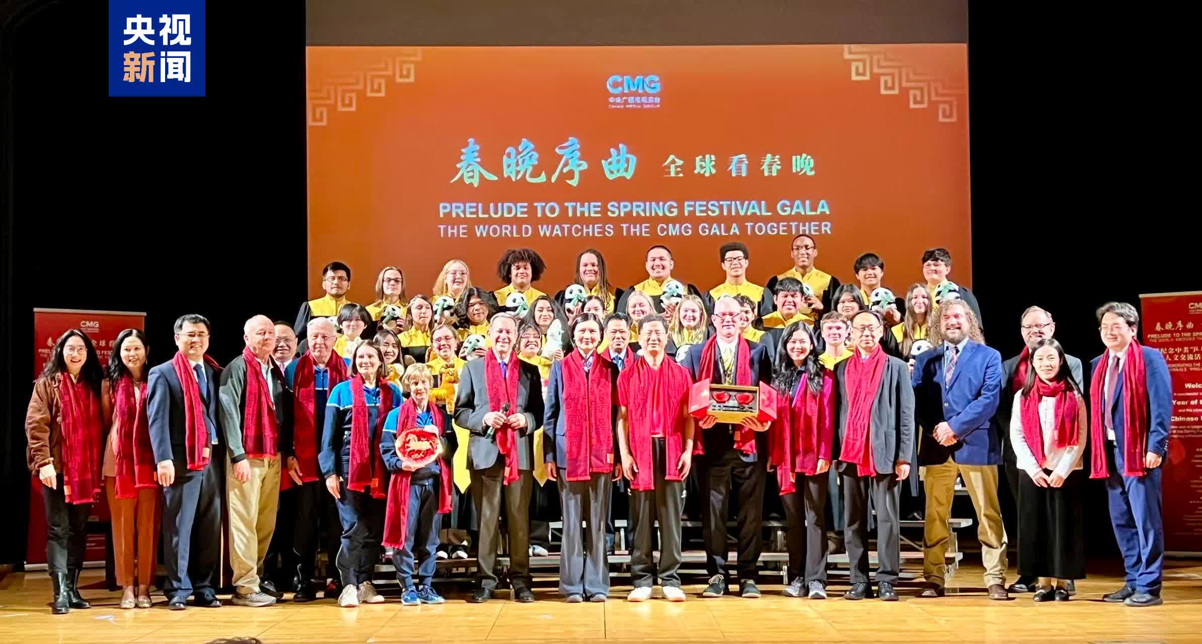 活動上,來自林肯中學的25名高中生深情演繹中文歌曲《在希望的田野上》、英文歌曲《伴我同行》,用歌聲傳遞對中美友誼的美好祝願。活動現場還播放了總台馬年春晚宣傳片以及「跟着電影遊中國」精彩片段,並通過全息影像設備在會場進行循環展播,帶領現場嘉賓沉浸式感受中國文化的雋永魅力。