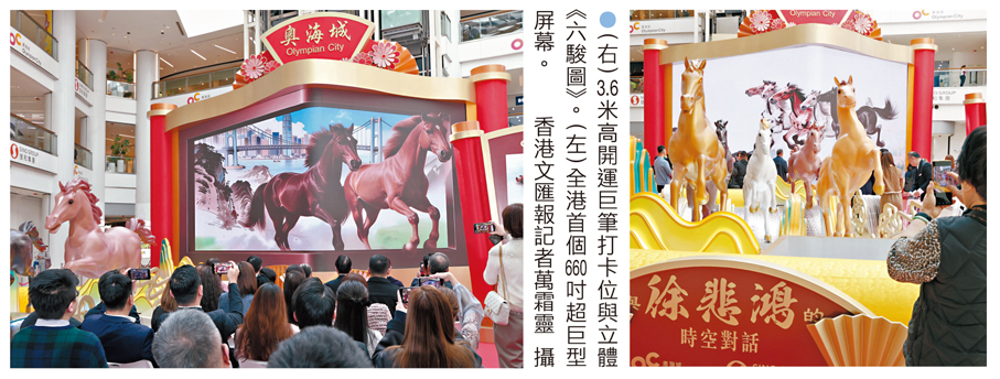信和集團與徐悲鴻藝術委員會、悲鴻靜文藝術研究中心合作,於奧海城2期地下主題中庭及活動大堂推出這項新春藝術盛會。場內打造9米長《六駿圖》立體奔馬藝術裝置及3.6米高開運巨筆打卡位,並設「AI水墨馬互動畫廊」,可以透過先進AI(人工智能)技術讓參加者手繪的線條即時轉化為水墨動畫及賀圖,投入不一樣的國寶級藝術體驗。