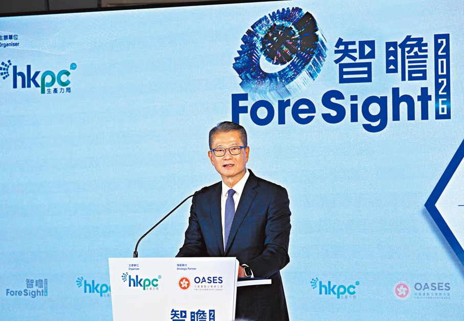 行政長官李家超日前表示特區政府將首次制定五年規劃,就對接國家「十五五」規劃制定框架。香港生產力促進局昨日舉辦「智瞻2026」,並由引進重點企業辦公室(OASES)作為活動的策略夥伴,以「聚力創新生態,橋接香港與『十五五』新規劃」為主題,聚焦本港構建更蓬勃的創科生態,以對接國家「十五五」規劃的新機遇。財政司司長陳茂波在活動致辭時指出,香港將在金融支持和賦能科技發展等三方面發力,建設國際創科中心,服務國家創科發展大局,推進香港自身高質量發展。