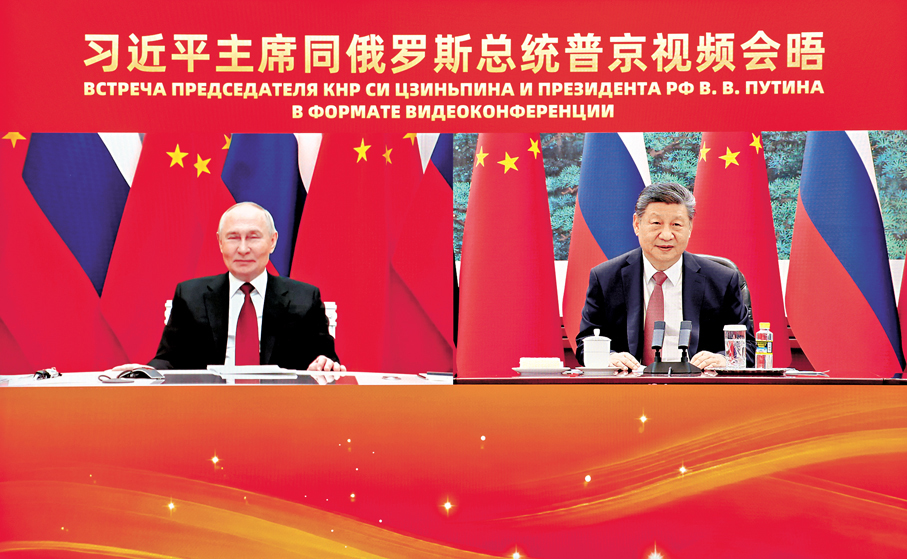 香港文匯報訊 據新華社報道2月4日下午,國家主席習近平在北京人民大會堂同俄羅斯總統普京舉行視頻會晤。習近平表示,開年以來,國際形勢愈發動盪。作為負責任大國和聯合國安理會常任理事國,中俄兩國有義務推動國際社會堅守公平正義,堅定捍衛二戰勝利成果,堅決維護以聯合國為核心的國際體系和國際法基本準則,攜手維護全球戰略穩定。