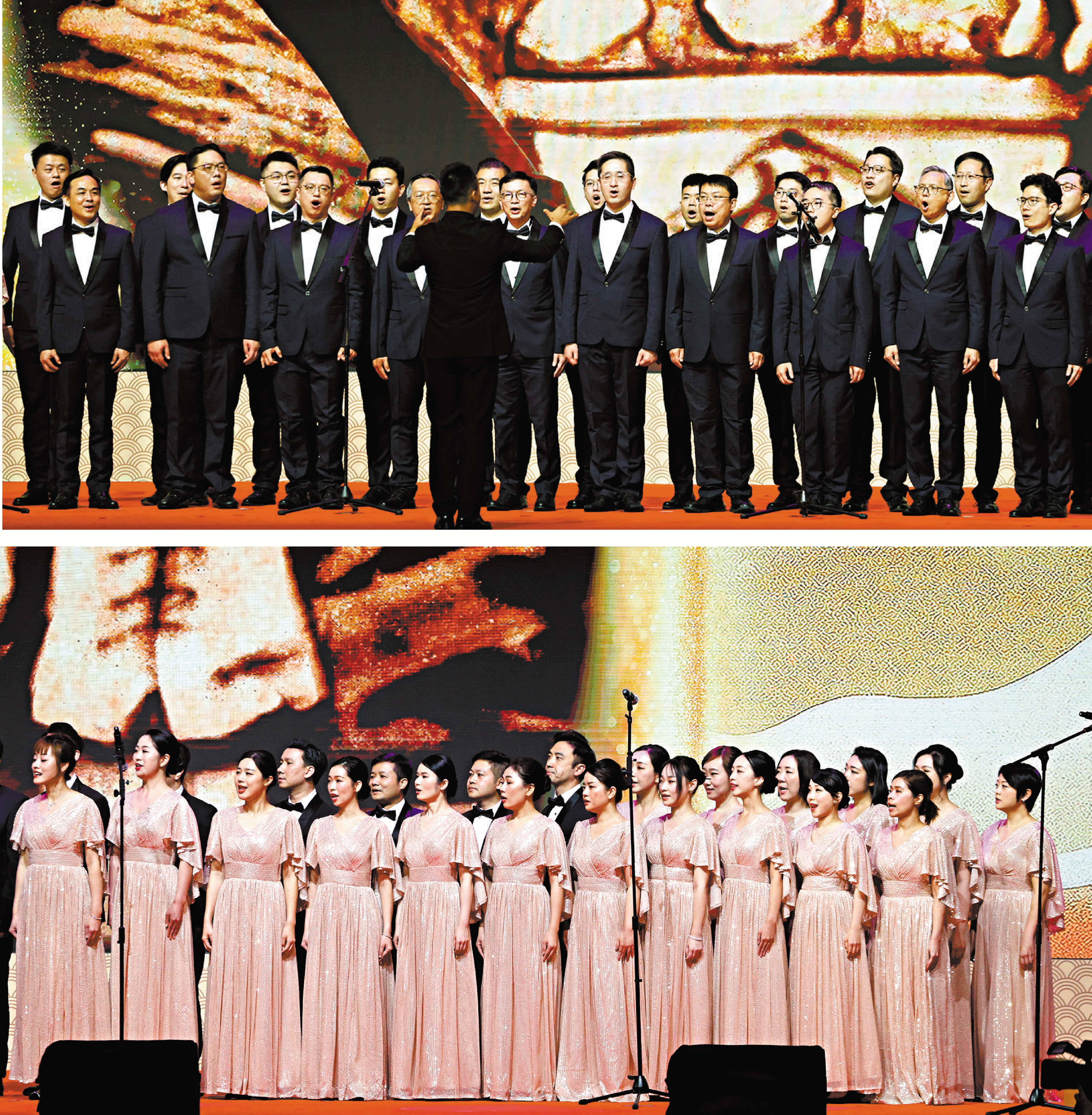 3個精彩節目結束後,全場肅立,並在合唱團帶領下一同高唱《我和我的祖國》,共同唱響香港融入和服務國家發展大局、繼續開創美好未來的堅定信心。歌詞中「我分擔着海的憂愁,分享海的歡樂」等動人句子伴隨優美旋律響徹會場,深情表達香港與祖國血脈相連、命運與共的情感,進一步凝聚起香港由治及興、續寫輝煌的磅礴力量。