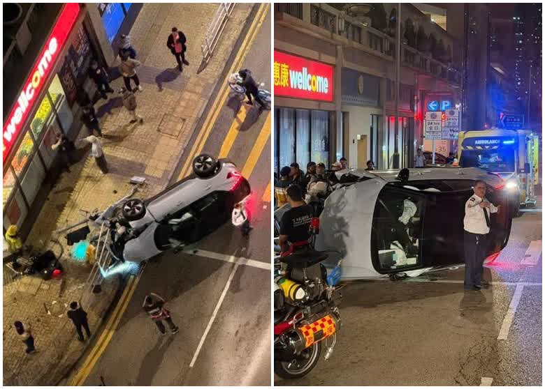 香港文匯報訊(記者 蕭景源)今晚(5日)8時許,一輛私家車沿屯門海珠路行駛,當駛至海典軒對開,懷疑收掣不及與一輛客貨車相撞,私家車繼而掃毀路邊鐵欄後翻側。