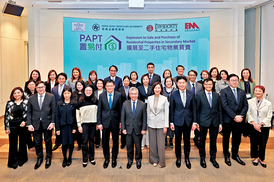 金管局副總裁阮國恒昨在記者會上表示,自2026年2月28日起,所有提供住宅樓宇按揭服務的持牌銀行都會將PAPT拓展至二手住宅物業買賣,同時將新安排正式命名為「置易付」,讓市民更易認識新支付安排。在新安排下,買方的按揭貸款款項會透過銀行之間的電子支付系統轉賬至賣方銀行,賣方最快可於成交當日收到出售物業的收益。相較於傳統支付方式,款項須經雙方律師的銀行戶口以支票進行交收,一般需待成交後兩個工作天及支票收妥後方可完成收款,「置易付」是更快、更直接、更安全的選擇,同時可減低銀行業進行按揭業務時所面對的信用和操作風險。如有意採用「置易付」,買賣雙方可通知其地產代理在臨時買賣合約加入相關條款。