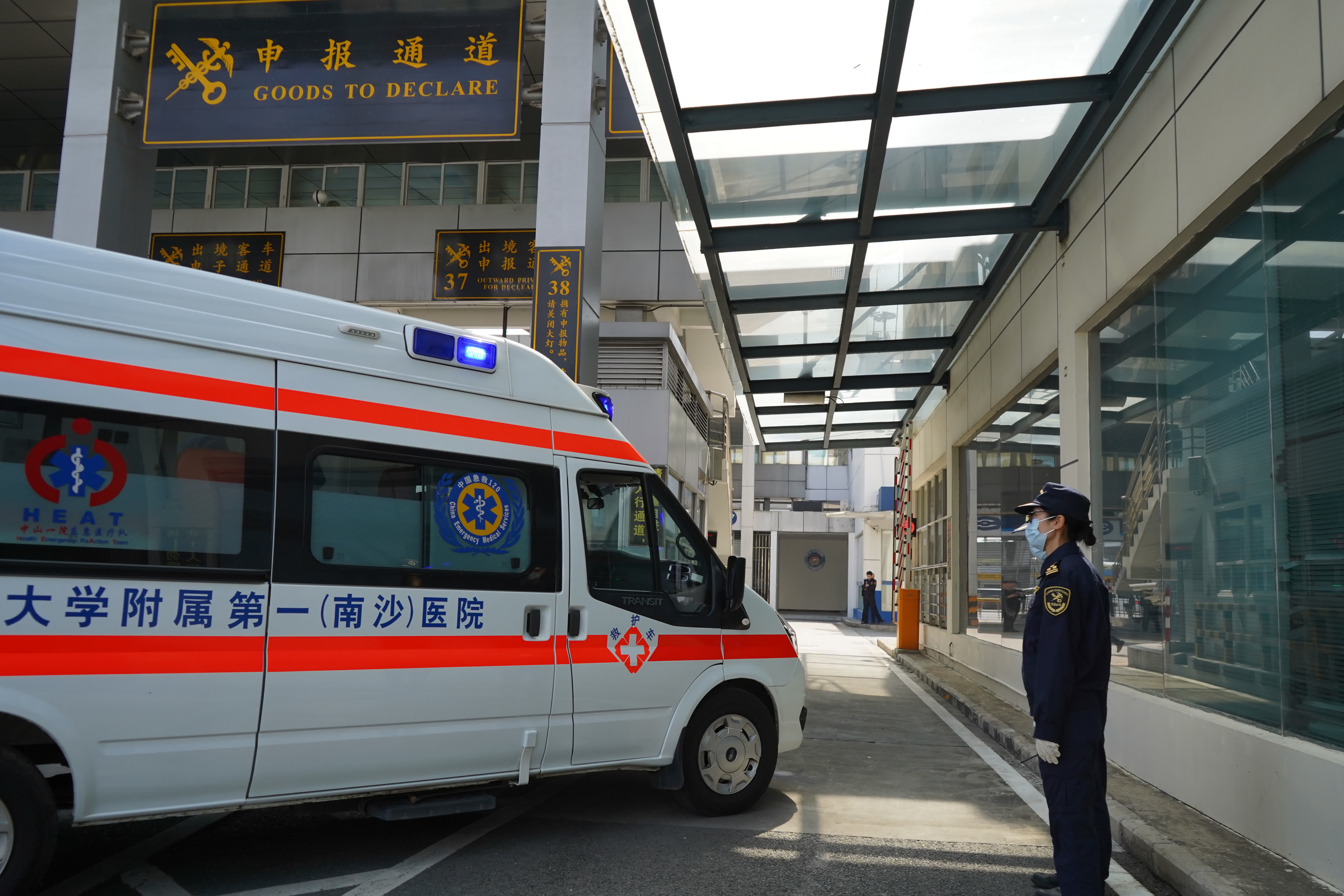 12時51分,救護車穩穩停靠深圳灣口岸,早已在此待命的海關關員迅速上前,僅用1分鐘便高效完成檢疫查驗手續。伴隨着信號燈的持續閃爍,救護車再度啟程,直赴香港屯門醫院。這是 「大灣區跨境直通救護車試行計劃」 首次從深港間拓展至穗港間。