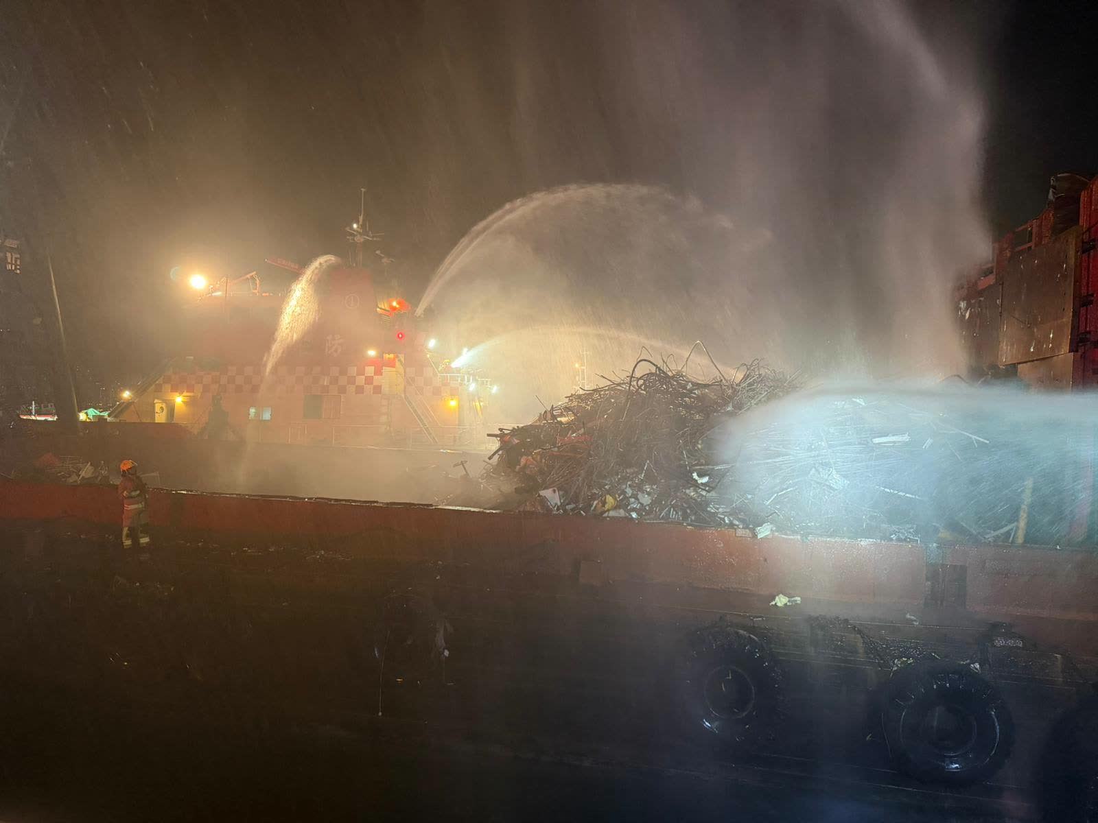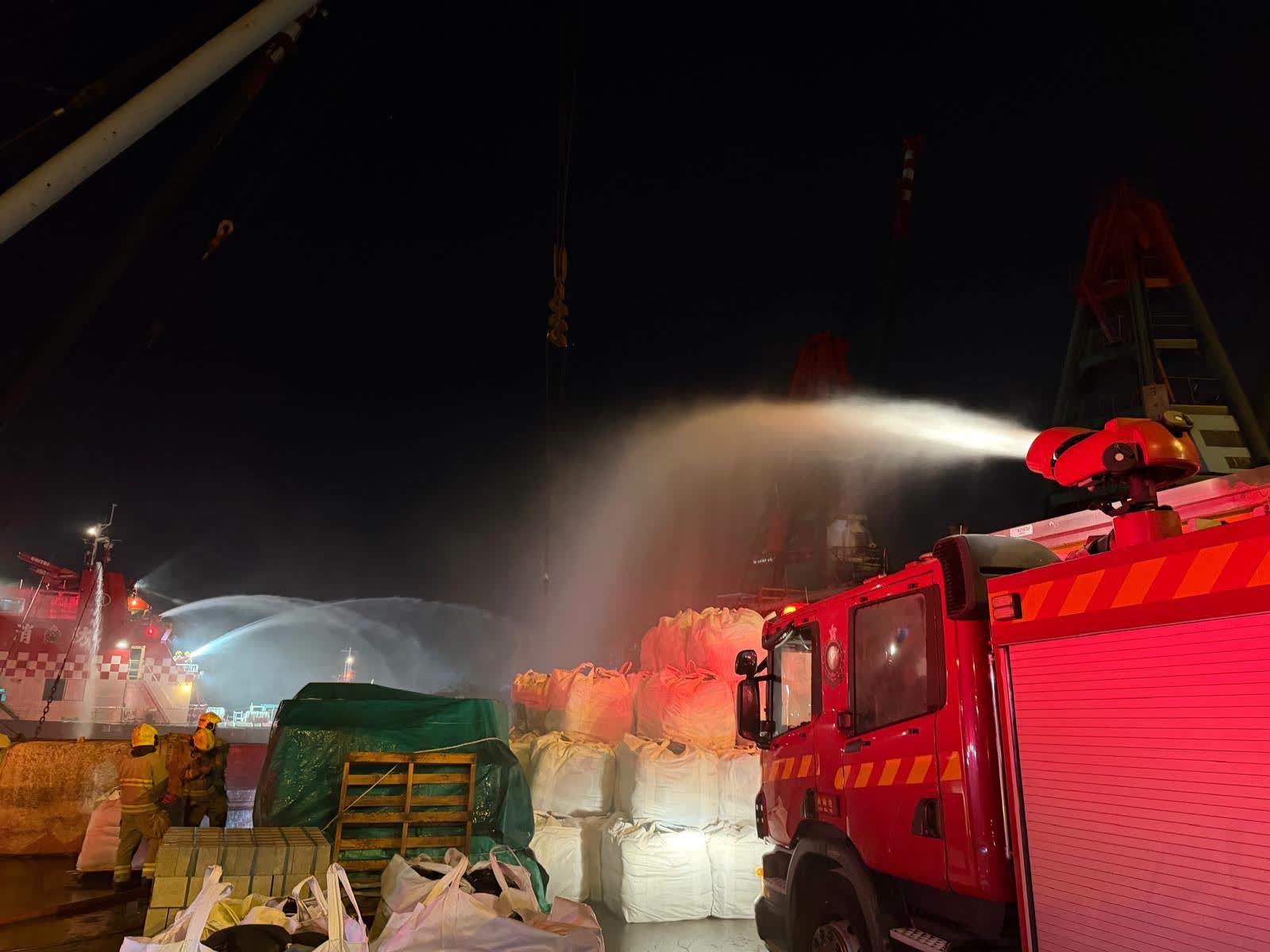 香港文匯報訊(記者 蕭景源)今日(6日)凌晨4時許,海輝道38號新油麻地公眾貨物裝卸區對開一艘躉船上,一批回收金屬物料突然冒煙起火,火勢迅速蔓,一片火光熊熊,濃煙直衝百米半空,遠近皆見。消防處接報派出多輛消防車及滅火輪到場,分別從海陸兩路進行灌救,並呼籲如市民受到隨風飄散的煙霧和異味影響,可關閉門窗及保持鎮定;直至早上7時32分,消防員成功將火救熄,初步火警無人受傷及無可疑,起火原因有待進一步調查。