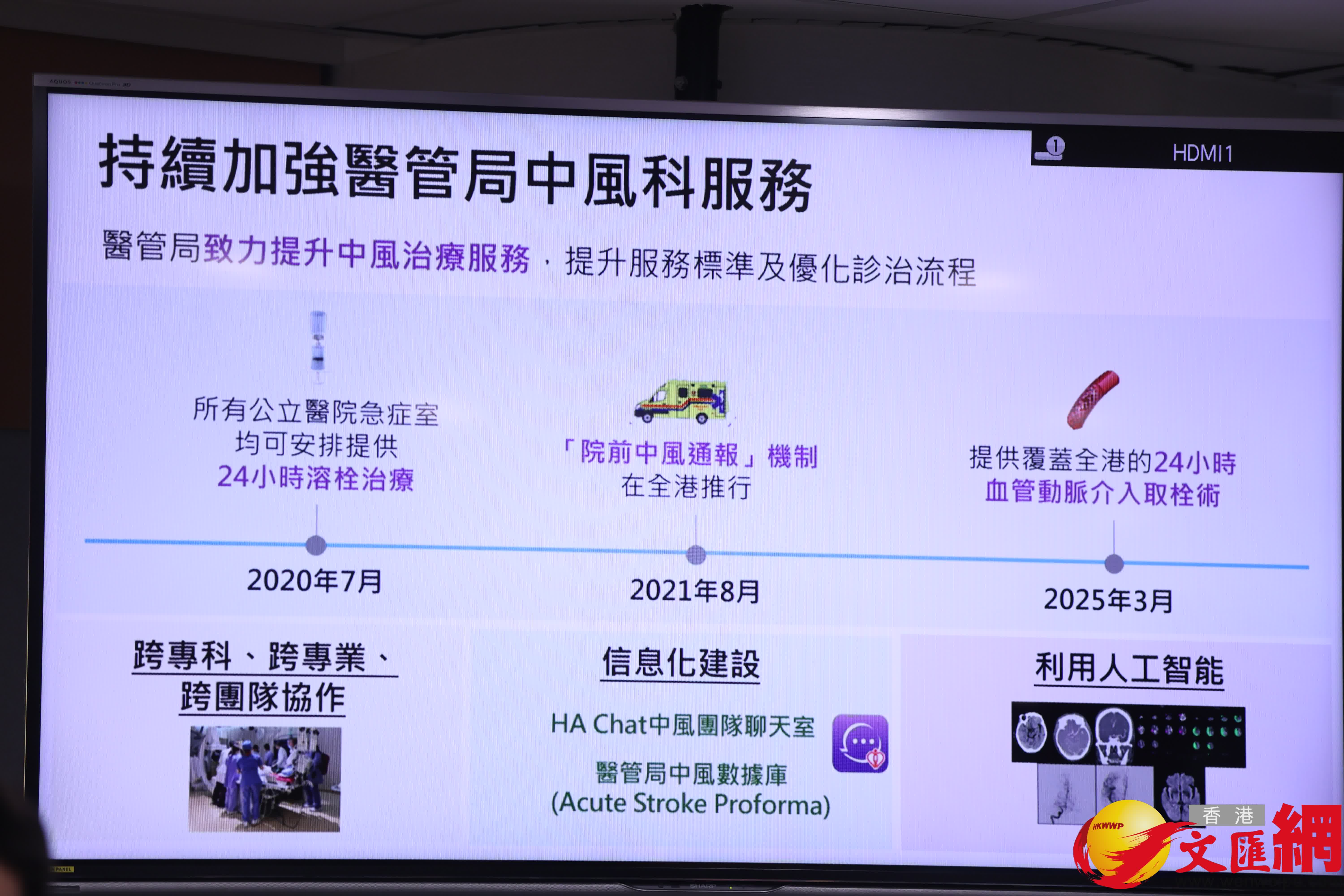 香港文匯報訊(記者 楊盈盈)中風是香港第四大死亡原因,亦是引致長期殘疾主因。2025年醫院管理局共接獲19,000宗初步診斷為中風的個案。特區行政長官李家超在最新一份《施政報告》中提出,強化中風緊急救治服務網絡並進一步完善服務流程,以提升中風病人存活率及功能恢復。醫管局總行政經理(綜合臨床服務)曾子充今日(6日)向傳媒表示,醫管局一直積極擴展取栓治療服務,以擴大服務覆蓋範圍;目前公立醫院已於2025年3月完成覆蓋全港的24小時缺血性中風治療服務網絡,臨床條件合適的病人會獲安排到指定醫院接受取栓治療。相關服務需跨專科、跨部門協作,涵蓋急症科、腦神經外科、放射科、麻醉科等。透過持續加強醫管局中風科服務,2021至2025年間醫管局整體急性中風救治關鍵時間顯著縮短:由抵達急症室至「開始靜脈溶栓治療時間」的中位數,從2021年的68分鐘縮短至58分鐘;由抵達急症室至「股動脈穿刺(取栓手術)時間」的中位數,則由2021年的110分鐘縮短至93分鐘。