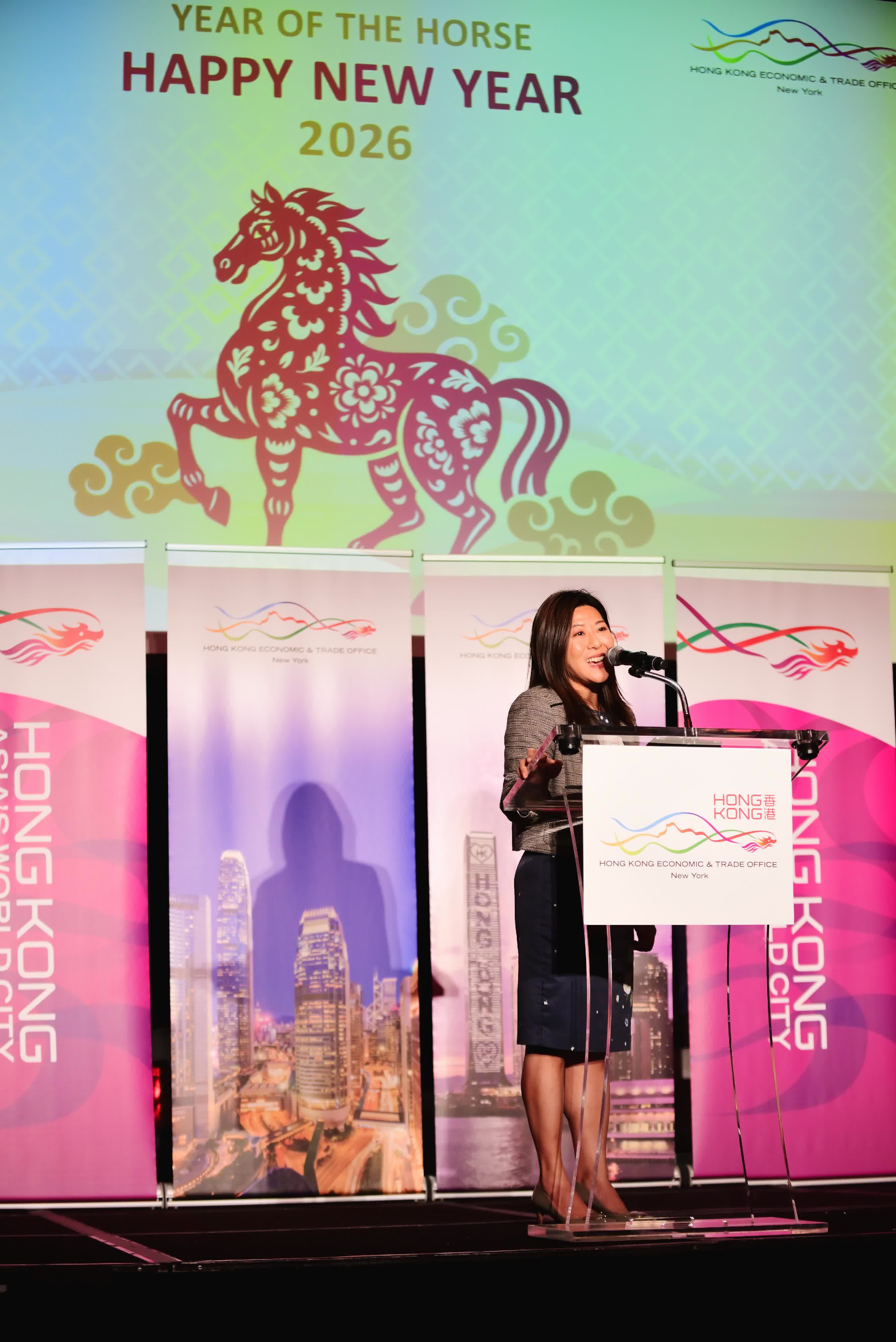 香港駐紐約經濟貿易辦事處處長何美智在致辭時強調,香港與美國在經濟、投資和貿易方面關係密切。現時約有1 550家美國公司在香港營運,2025年香港對美國的整體出口總值錄得9.7%的增幅。同期,截至去年11月,美國對香港錄得約261.5億美元的可觀貿易順差。她指,馬年象徵活力與進步,她期待與亞特蘭大和喬治亞州在金融科技、物流、航空、教育及文化交流等領域深化合作。