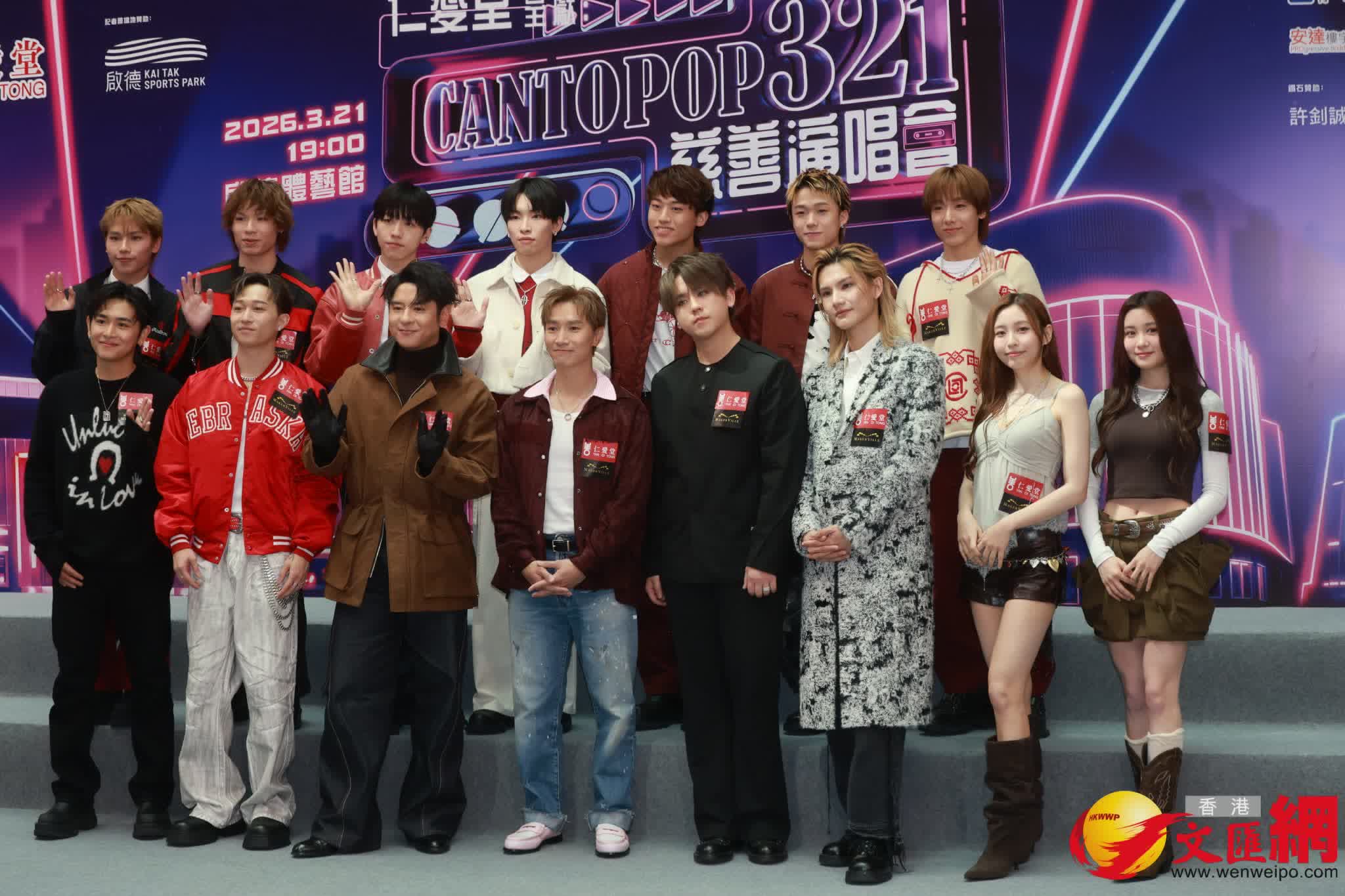 香港文匯報訊(記者 梁靜儀)姜濤、李駿傑(Jeremy)、陳柏宇、許廷鏗、COLLAR 成員王家晴(Candy)、蘇雅琳(Ivy)及男子組合ZPOT,今日到啟德出席《Cantopop321 慈善演唱會》記者會,吸引大批粉絲到場支持。