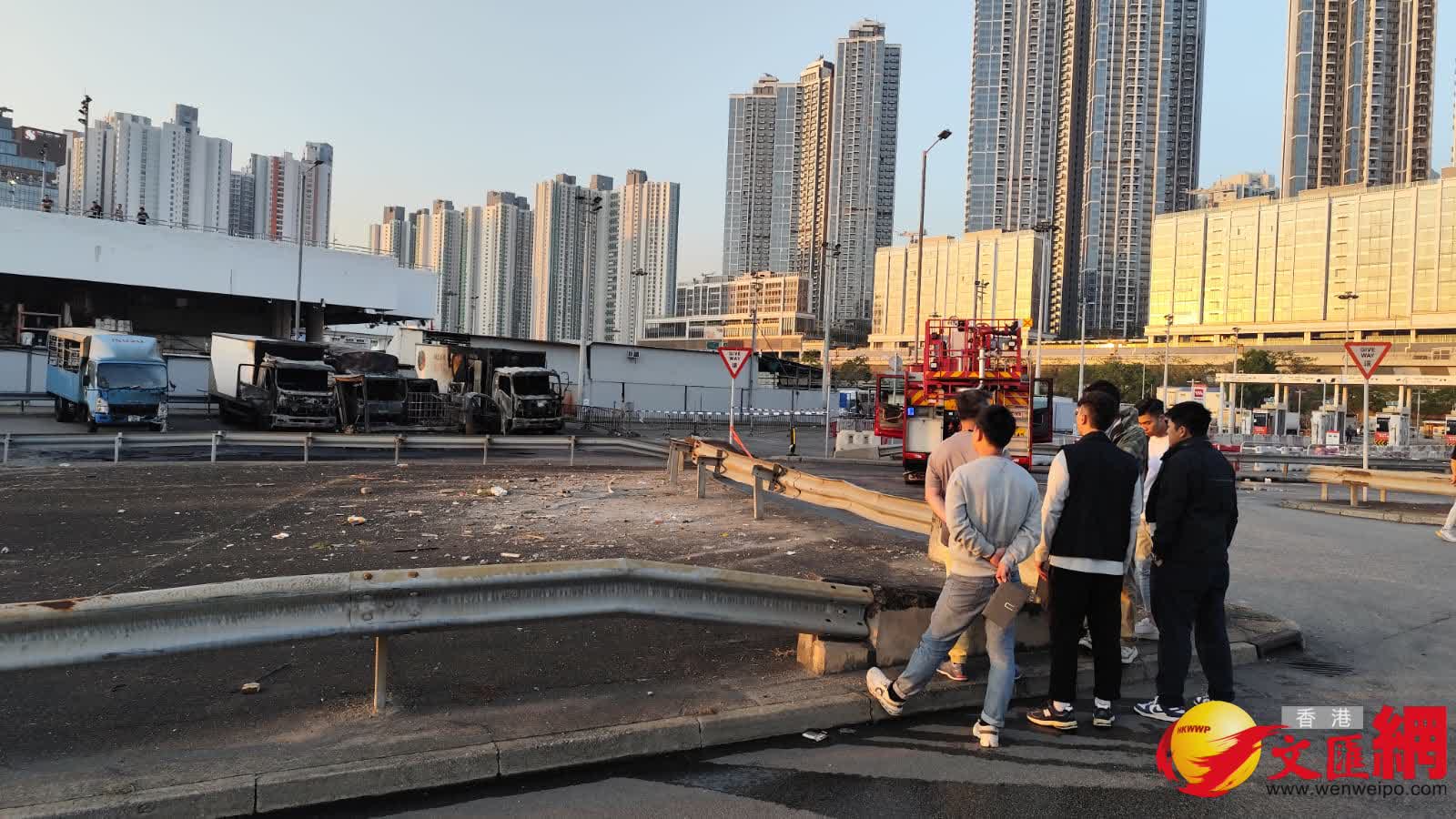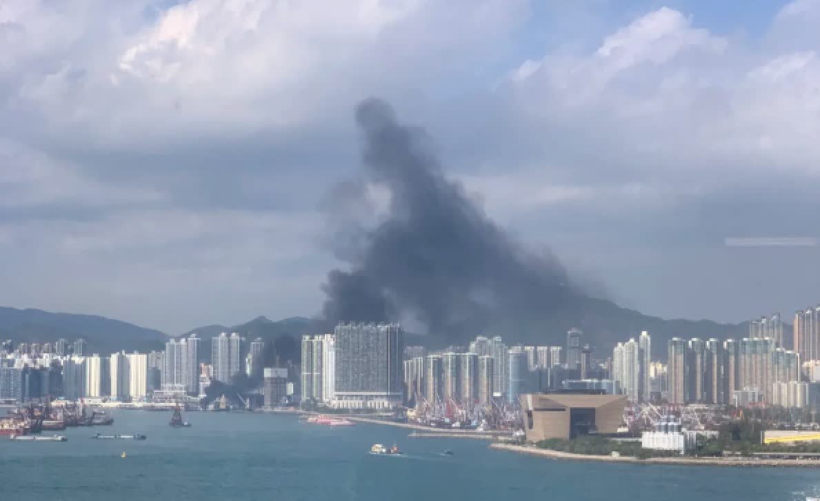 根據網上影片及圖片所見,火警地點有大量濃直衝數百米半空中,遠至西九文化區至港島一帶也清晰可見。