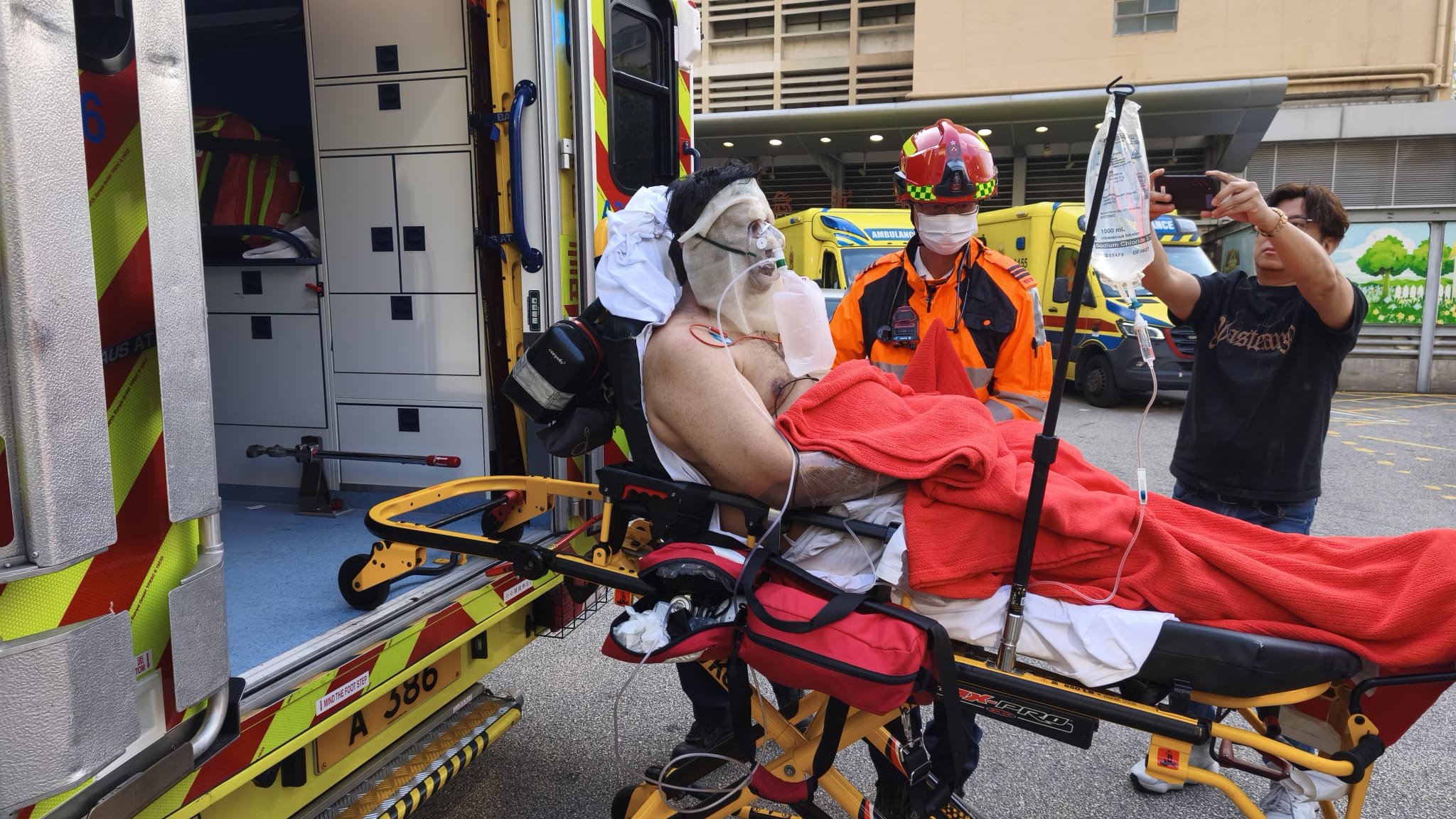 火警中,兩名40歲及46歲男子受傷,分別15%及20%燒傷,由救護車送伊利沙伯醫院及瑪嘉烈醫院救治。