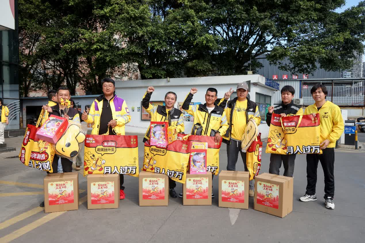 (香港文匯網記者郭若溪)「2026年第一筆補貼到賬了,還有年貨大禮盒,這個年收穫滿滿!」深圳騎手揭英強難掩喜悅,向大家曬出手機頁面。2月5日,在深圳市委互聯網企業工委、深圳市市場監管局、龍華區總工會等相關部門的指導下,美團騎手新春表彰活動在深圳市龍華區美團騎手黨群服務中心舉行。騎手們濟濟一堂,相聚表彰聯歡,現場向騎手發放年貨特產及騎手專屬文創禮包,更有不少騎手曬出新年的第一筆社保補貼到賬頁面。據悉,春節前,美團在全國各地舉辦多場新春聯歡活動,近10萬名騎手參與。