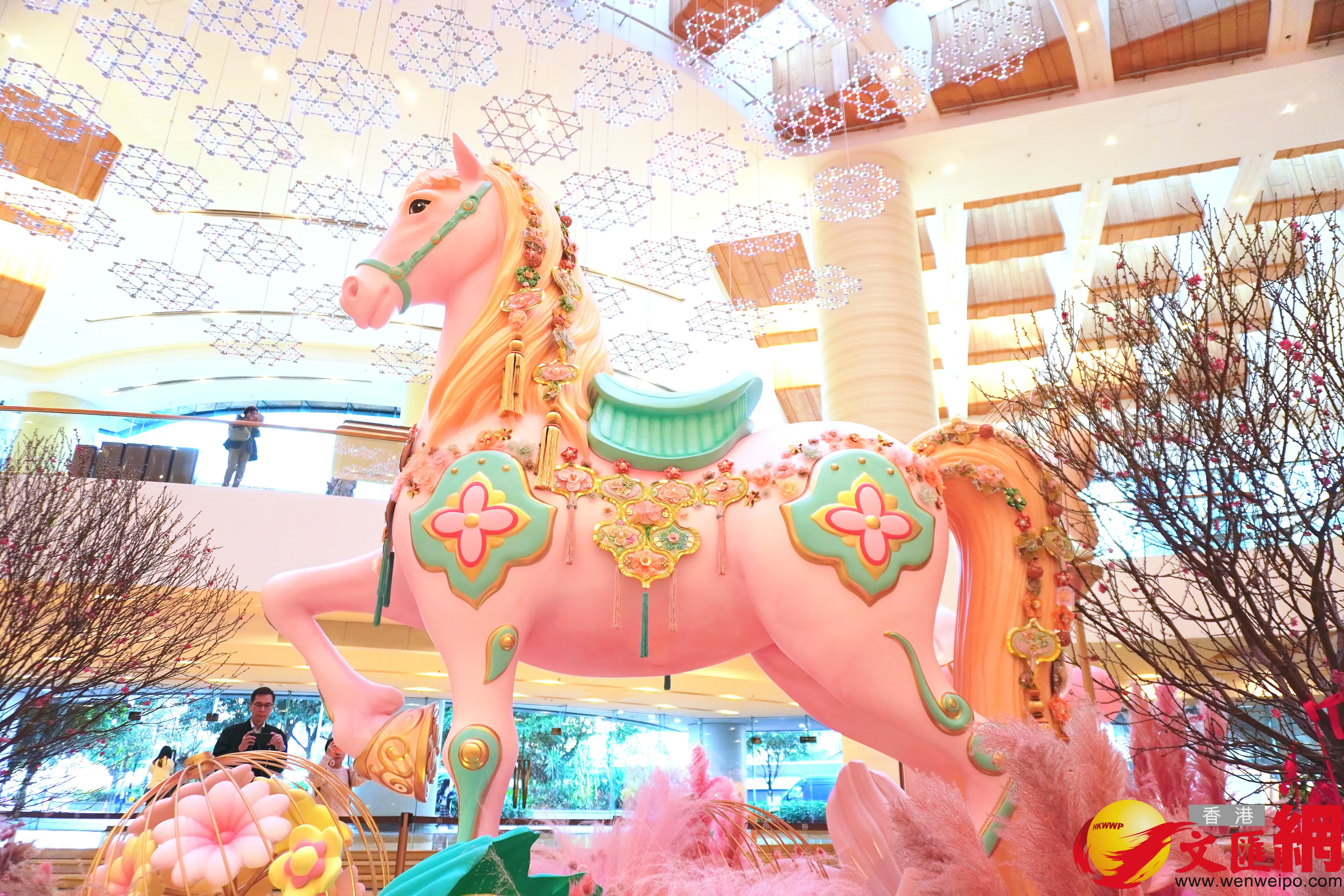 香港文匯報訊(記者 張岳悅)太古廣場及星街小區喜迎新春,呈獻「駿馬星馳 錦簇而至」藝術裝置。即日起至3月3日,太古廣場化身為一座瀰漫柔和粉紅氣息的中式庭園,以精巧刺繡工藝點綴節日氛圍。其中,一匹高達3.5米、氣勢昂揚的巨型駿馬尤為矚目,由本地刺繡團隊YLY studio傾力打造,透過細膩繁複的針線技藝,展現駿馬奔騰之姿,寄寓新歲的希望、幸運與豐盛。