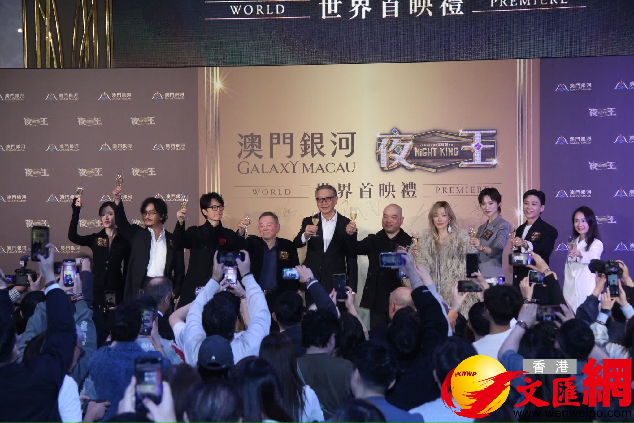 香港文匯報訊(記者 達里 澳門報道)賀歲片《夜王》昨晚於澳門舉行世界首映禮,黃子華、鄭秀文(Sammi)、謝君豪、王丹妮、廖子妤和盧鎮業悉心打扮出席,眾人高興可以在新酒店及賭廳取景拍攝,子華在過百賓客見證下,笑稱像玩「百家樂」掀牌,邀請所有賓客一起叫「大」,寓意電影票房大賣,也令他充滿信心。