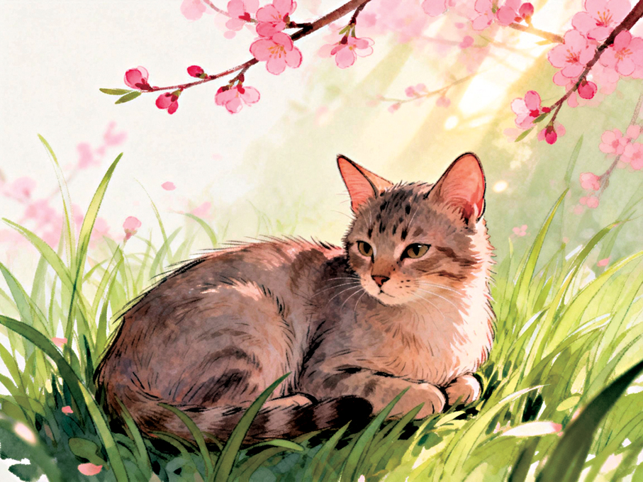 我站起身,開始舔毛。從頭到尾,每一處凍僵的地方都被仔細梳理。三花貓已經離開了,花壇裏的新綠在暮色中變成黑色的小點。風完全變了,現在它像溫熱的舌頭,輕輕舔過我的脊背。