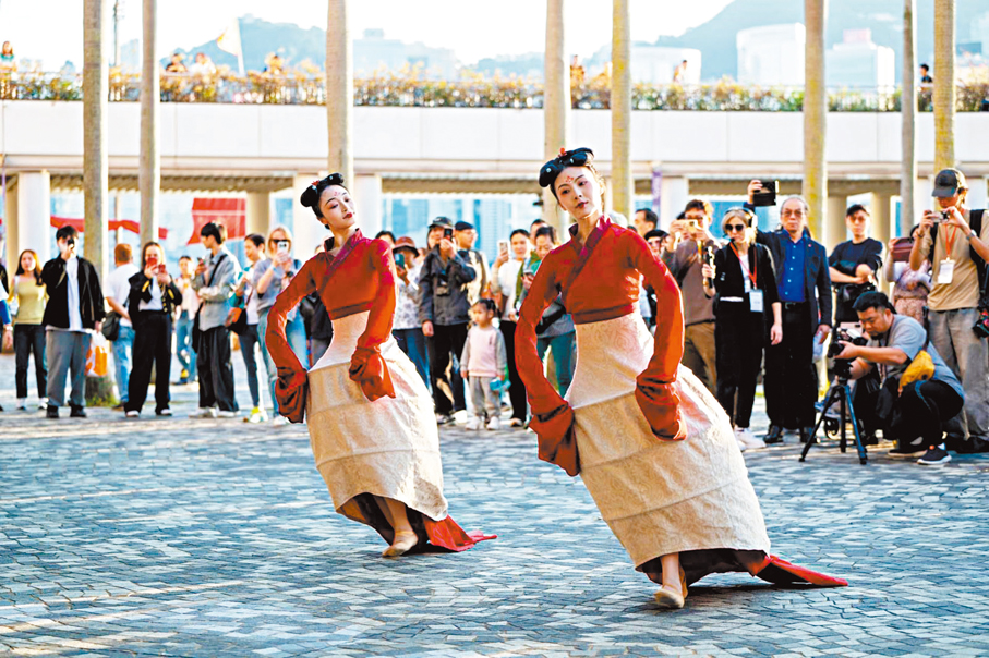 作為近年交流互鑒的一個鮮明成果,2024年11月在尖沙咀文化中心與天星小輪一帶舉行的「舞薈香江·香港環境舞蹈日」,由中國文聯香港會員總會主辦、中國舞蹈家協會合辦,匯聚六十餘名來自內地與香港的舞者參與。活動以「環境舞蹈」形式打破鏡框式舞台,把大坑舞火龍等本地文化意象與民族舞身韻、漫畫及武術元素交織,作出香港如何在大灣區框架下連結內地創作資源與本地城市空間的優秀示範。
