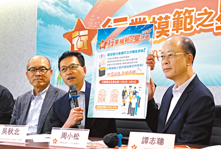 香港文匯報訊(記者 盧慧穎)由工聯會牽頭,聯同勞工界、主要商會團體共同籌辦,並獲特區政府支持的「行業模範之星」2026年度評選昨日開始報名。本屆評選以「行業典範 全城共讚」為口號,旨在表彰香港各行業各崗位的打工仔。