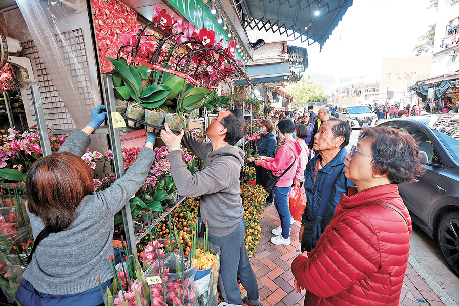 ●旺角花墟一帶花店,不少市民選購蘭花、年桔等點綴家居。 香港文匯報記者郭木又 攝