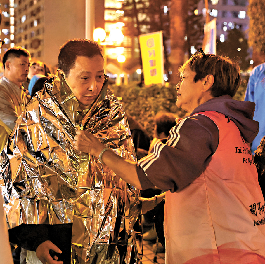 火災發生後的第一個夜晚,大火未能撲滅,數百名受影響的宏福苑居民獲安置在附近的臨時庇護中心。與此同時,宏福苑以外的香港市民紛紛慷慨解囊,有錢出錢、有力出力。一時間,四面八方的關心與愛心湧向大埔,大批香港市民連夜運送糧水、毛巾、棉被、禦寒衣物、充電裝置等物資到場支援。