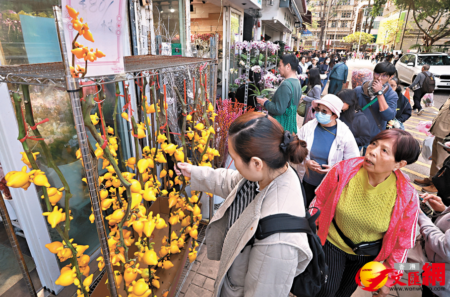 (香港文匯報編輯組)還有約十天便到農曆新年,市民已急不及待外出消費選購年花年桔、賀年食品,甚至為自已購入新衣服鞋履等。新春氣氛漸濃,每逢周末周日,銅鑼灣、尖沙咀、紅磡、旺角花墟等多個人流熱點不時人頭湧湧,一些連鎖商場更不惜工本加入與馬年有關的布置,製造「新熱點」讓顧客打卡。部分出售賀年食品的店舖、賀年飾物的攤檔、花檔等擠得水洩不通,商戶有望賺得盆滿缽滿,全城過年氣氛不斷升溫,市民「超前部署」送舊迎新,開開心心喜迎馬年。