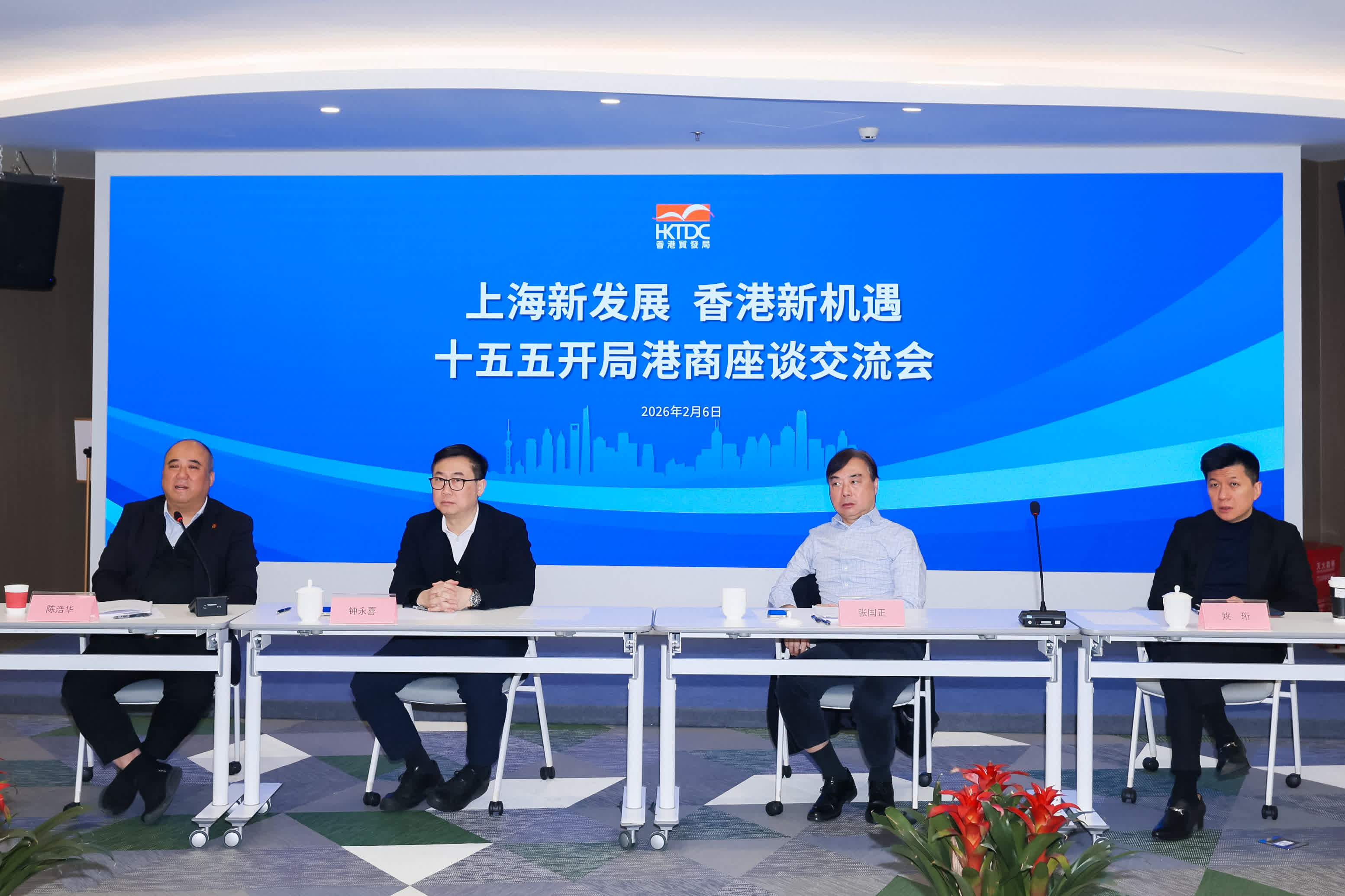 (香港文匯網記者 夏微)2026年是「十五五」開局之年,為了讓在滬港商更好對接「十五五」規劃,融入和服務國家發展大局,6日,香港貿發局在上海舉辦了「上海新發展 香港新機遇 十五五開局港商座談交流會」。港區上海市政協委員、在滬主要港人團體、商會負責人,以及部分在滬港企代表匯聚一堂,圍繞「十五五」時期港商在各行業領域的機遇與挑戰展開討論。