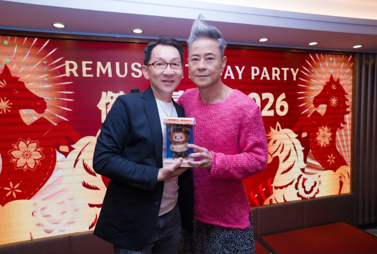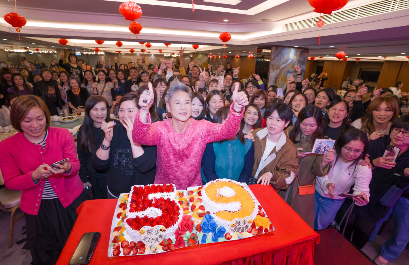 香港文匯報訊(記者 阿祖)昨日是組合草蜢成員蔡一傑(傑少)的59歲生辰,前晚他於酒樓筵開22席,與大約300位歌迷舉行生日晚宴,穿著紅色上衣的傑少風騷出場,高呼:「我返咗嚟啦!大家好嗎?祝大家新年快樂,身體健康,今晚玩得開心、食得健康!」歌迷尖叫與歡呼,一同高舉印有傑少靚仔樣的揮春齊聲恭賀,之後傑少與全場歌迷大合照及玩熱身遊戲,歌迷贏得他精心挑選的珍藏Labubu,全場嘩聲四起。