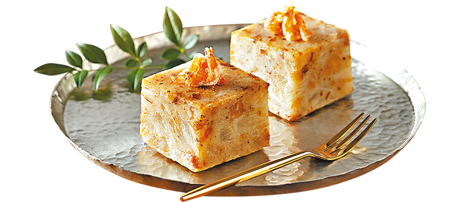 以日本厚削鰹魚片慢火熬煮高湯,只取鮮甜湯汁融入糕底,展現純正和風精髓﹔糕面鋪滿櫻花蝦,搭配清甜蘿蔔絲,口感豐富。輕煎後能釋出蝦香,與鰹魚湯底互相提升,使整體風味更立體。
