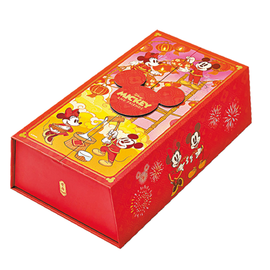 奇華餅家首推迪士尼米奇與好友系列「賀年年糕禮盒」,長形的禮盒設計充滿巧思,盒面印着米奇與米妮為新年預備的甜蜜互動,打開盒蓋更有驚喜,一個滿滿的「福」字隨即映入眼簾,寓意「福氣滿滿、幸福吉祥」。盒內盛載着兩款造型別致的年糕,包括印有米奇手套的「迷你椰汁糖年糕」,清甜軟糯,以及印有米妮蝴蝶結的「迷你亞麻糖年糕」,甘香煙韌,將傳統滋味與新春喜悅融合。