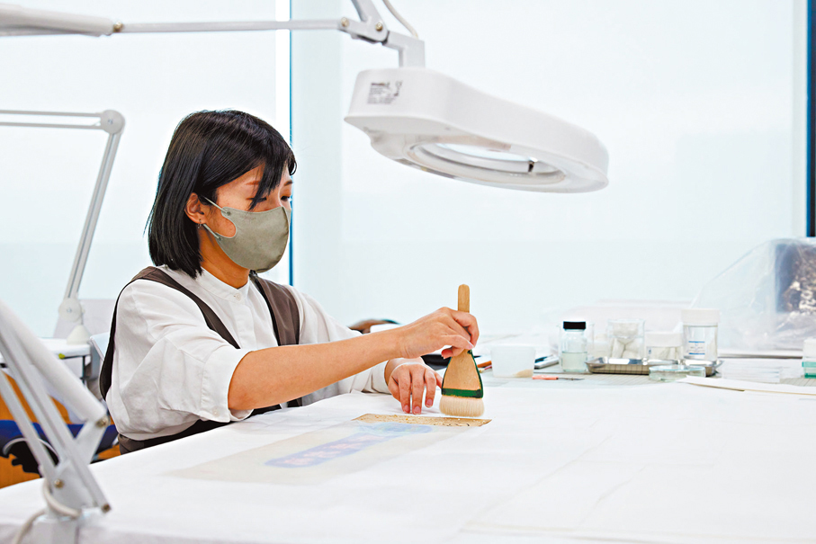 她分享,本次展覽大多展品源於捐贈,作品被分批送往修復室後,團隊會進行長達半年的狀況檢查,確保展品狀況適合展示,其後再進行修護、裝裱等展覽準備工作。