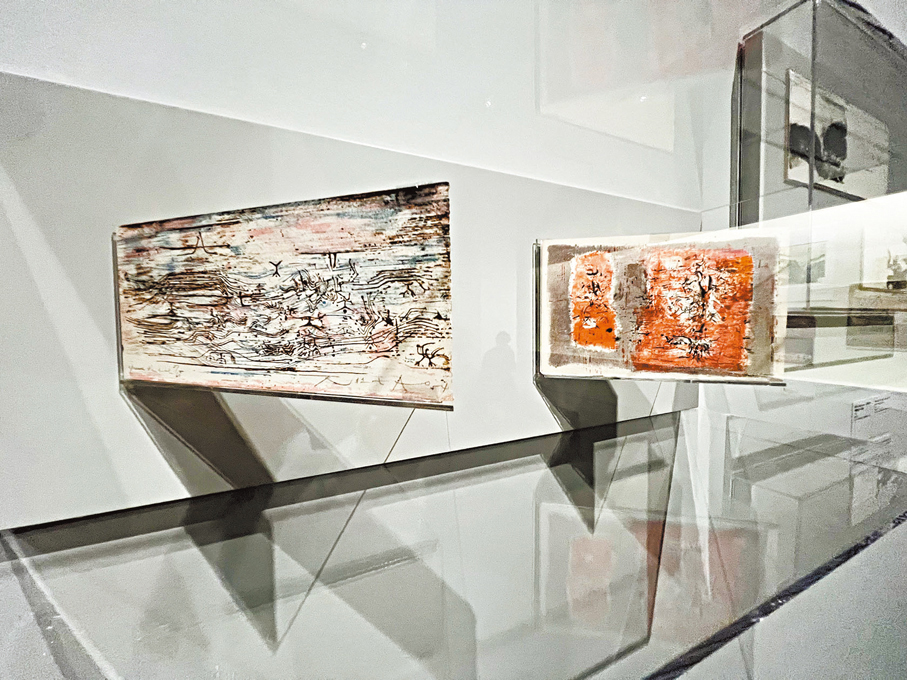 展品展示形式則需要修復員、策展人、設計師共同討論,敲定可同時顧及作品保護和美觀效果的方案。「具有版次編號的版畫作品多以框裱掛牆展示。有些展品是趙無極和畫廊、藏家用於寒暄的賀卡,打開看能看到祝賀內容。如果攤平展示,封面或內容總有一方會被遮蓋,便無法展示。對於這種,我們會製作一些配件,比如輔助作品立起的亞克力膠展示枱,以用於立體地展示展品的內外。」