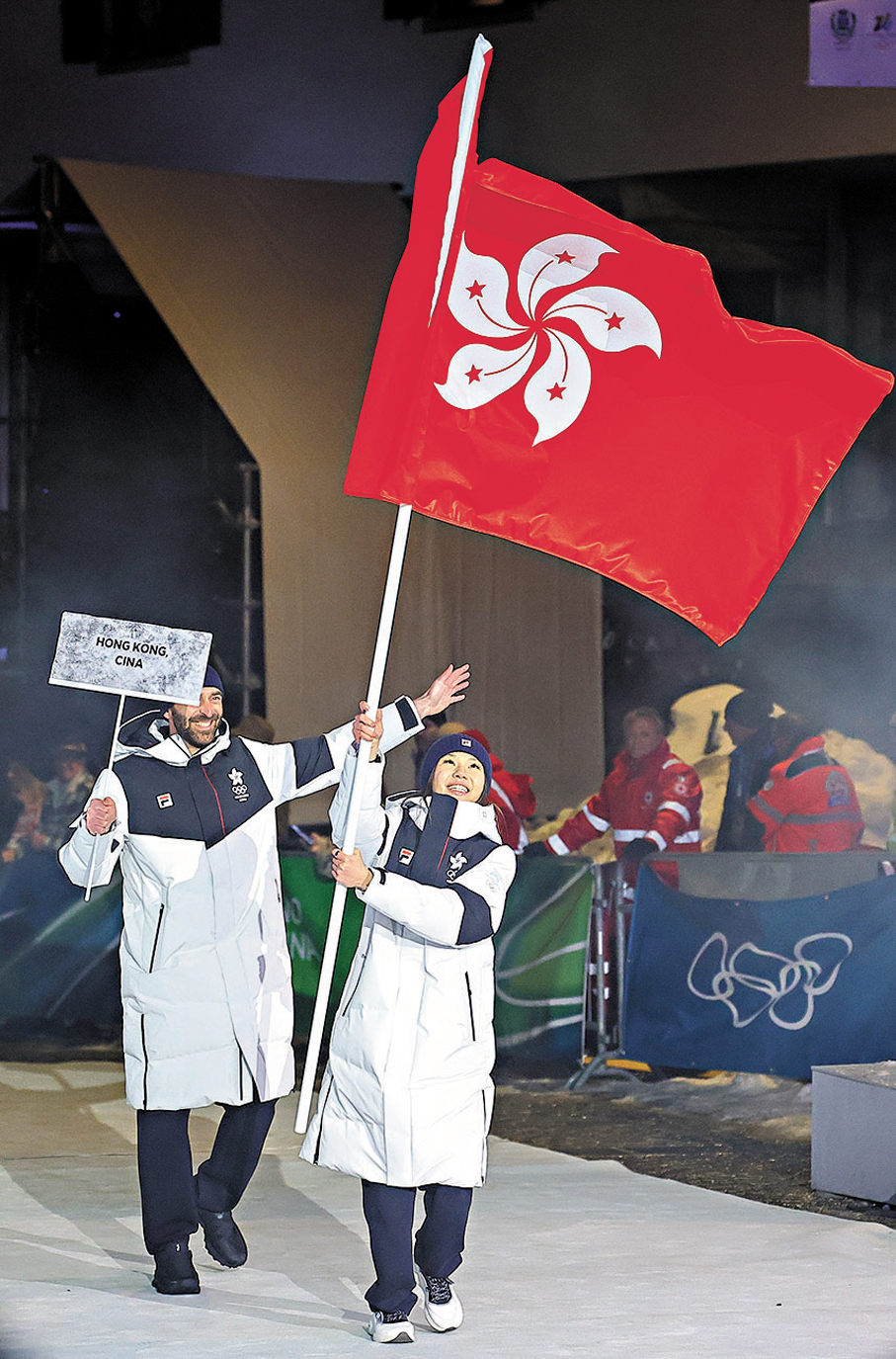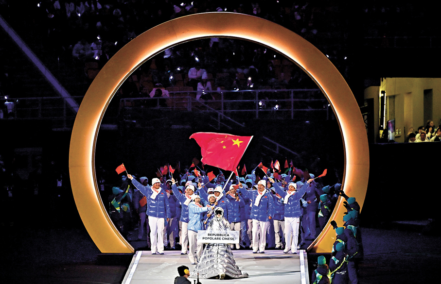 開幕式上,中國鋼琴家郎朗與意大利歌唱家巴托莉現場表演,速度滑冰選手寧忠岩與短道速滑選手張楚桐共同擔任持旗手,引領中國體育代表團進場。至於中國香港代表團由高山滑雪選手金詠晞及短道速滑選手郭子峰擔任持旗手,分別於雪山賽區和米蘭賽區持旗進場 ,與其他代表團成員及世界各地運動員,一同參與慶典。