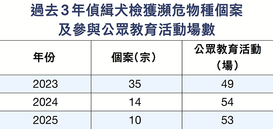 賴慧明表示,「偵緝犬隊還承擔公眾教育職責,定期走進學校和社區普及非法進口動植物風險及法規;同時借口岸宣傳、學校講座、媒體公告等多種方式,反覆提醒市民切勿非法進口,避免觸犯法例。」