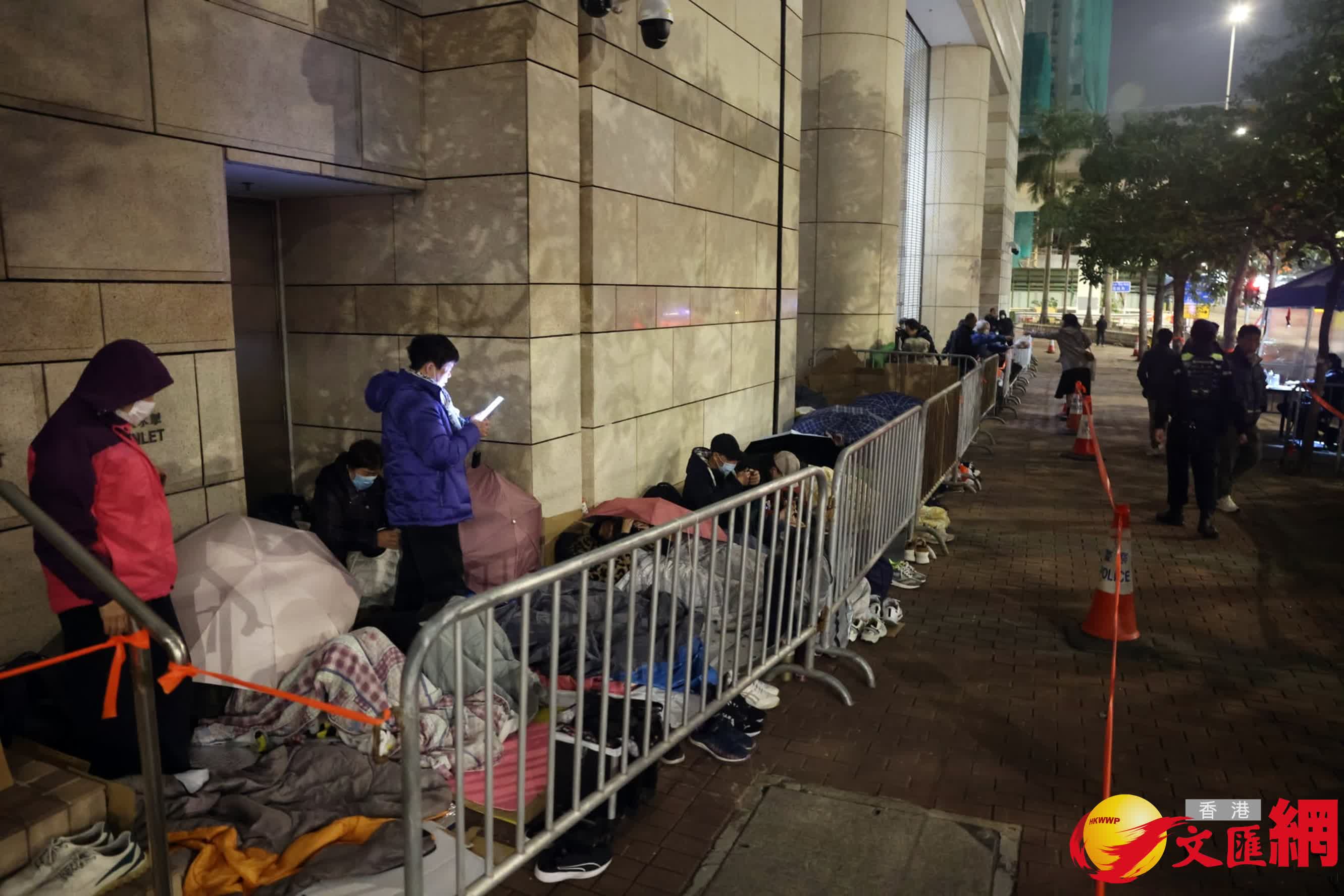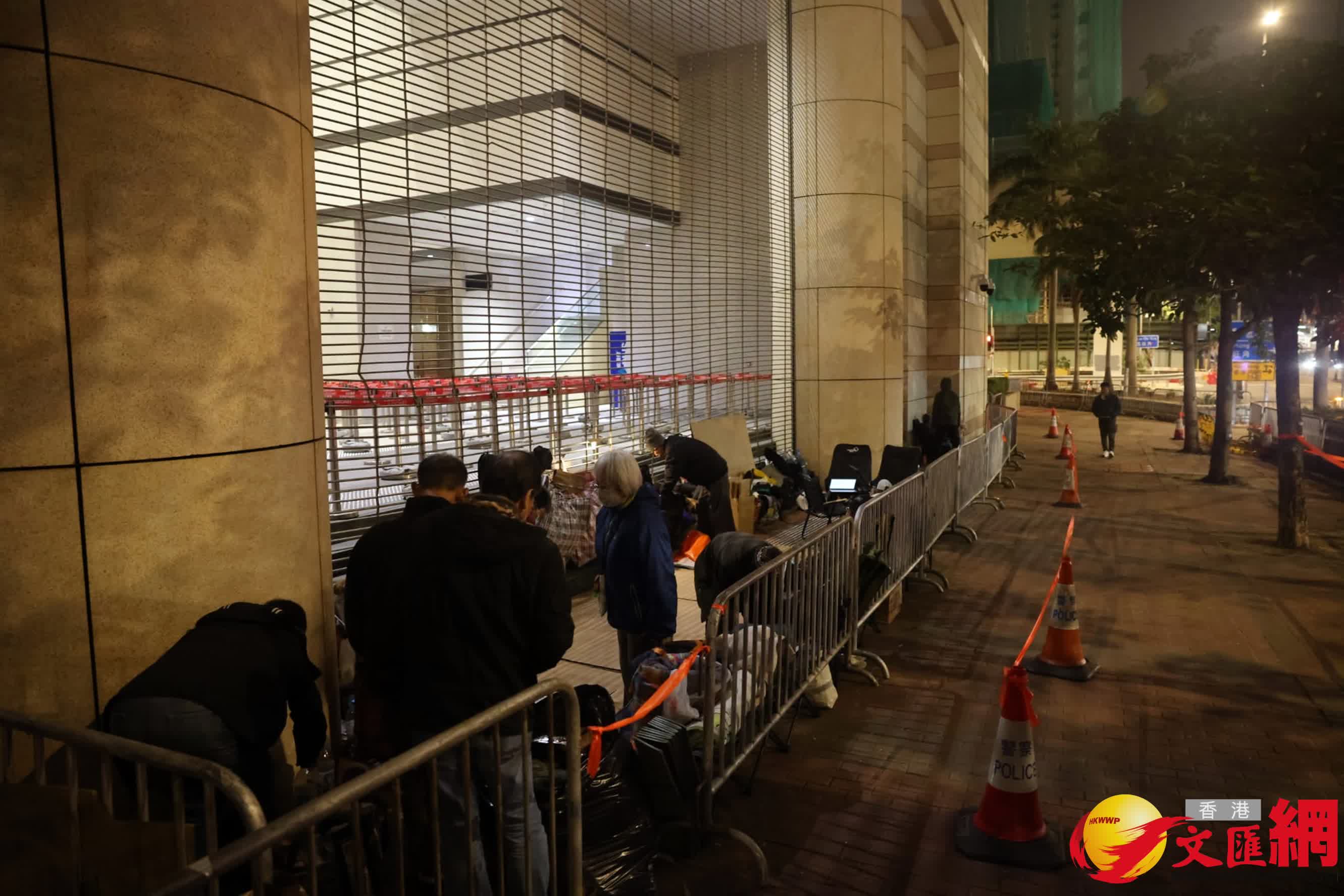 香港文匯報訊(記者 葛婷)壹傳媒創辦人黎智英及《蘋果日報》相關3間公司被控串謀勾結外國勢力等3罪,早前被裁定全部控罪成立。黎智英連同其他8名早前認罪的被告,明日(9日)上午10時在西九龍裁判法院(暫代高等法院)判刑,這亦是首宗香港國安法下,勾結外國勢力罪的案件判刑,全城關注。有市民早於上周五(6日)司法機構公布判刑日期當日已開始在法院外輪候旁聽席。至今日(8日)晚上,香港文匯報記者眼見排隊人龍長約100米,數十人身穿厚衣、帶同被子或紙皮冒寒通宵排隊,有警員在場維持秩序,氣氛平靜。