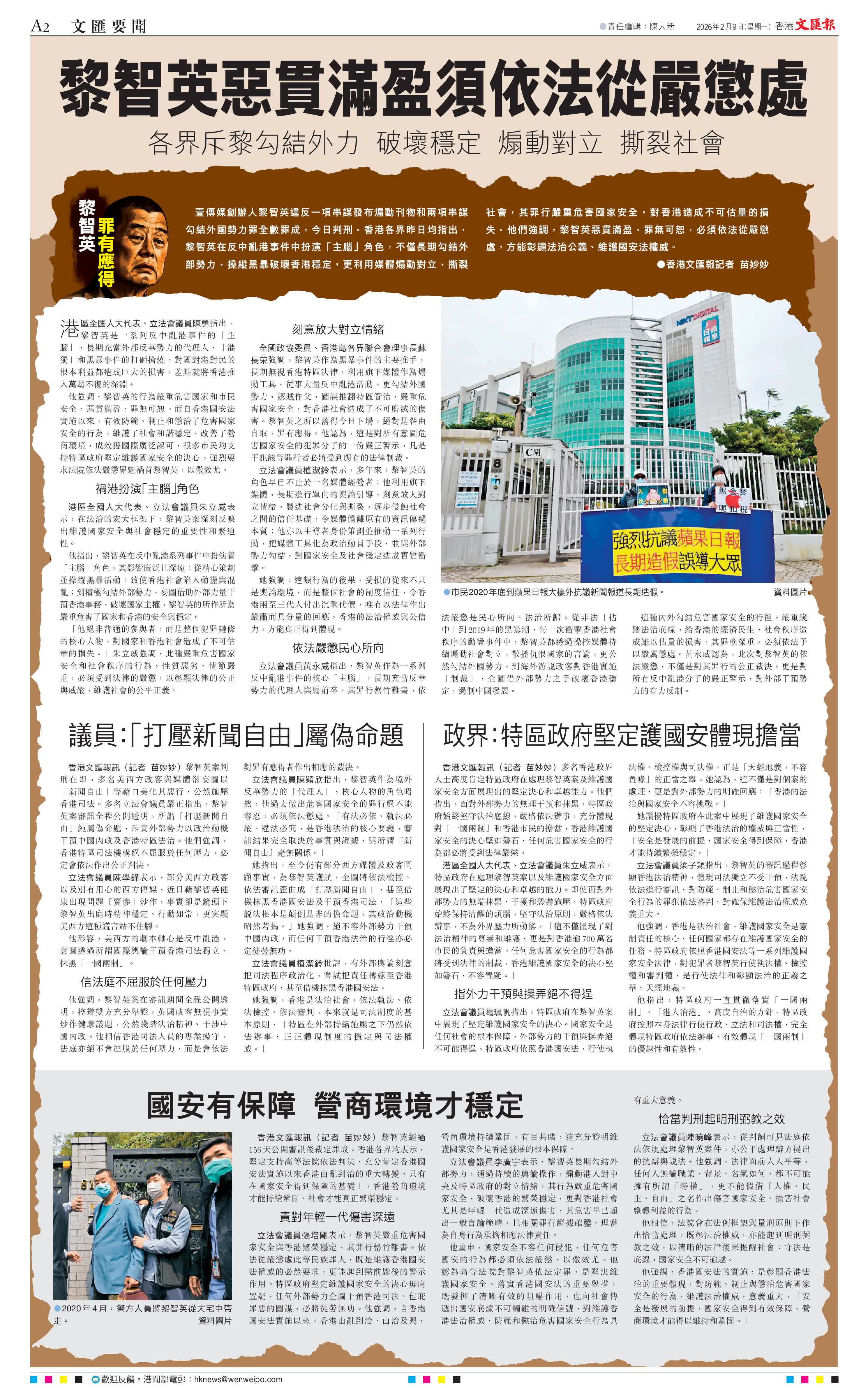 他強調,香港是法治社會,維護國家安全是憲制責任的核心,任何國家都存在維護國家安全的任務。特區政府依照香港國安法等一系列維護國家安全法律,對犯罪者黎智英行使執法權、檢控權和審判權,是行使法律和彰顯法治的正義之舉,天經地義。