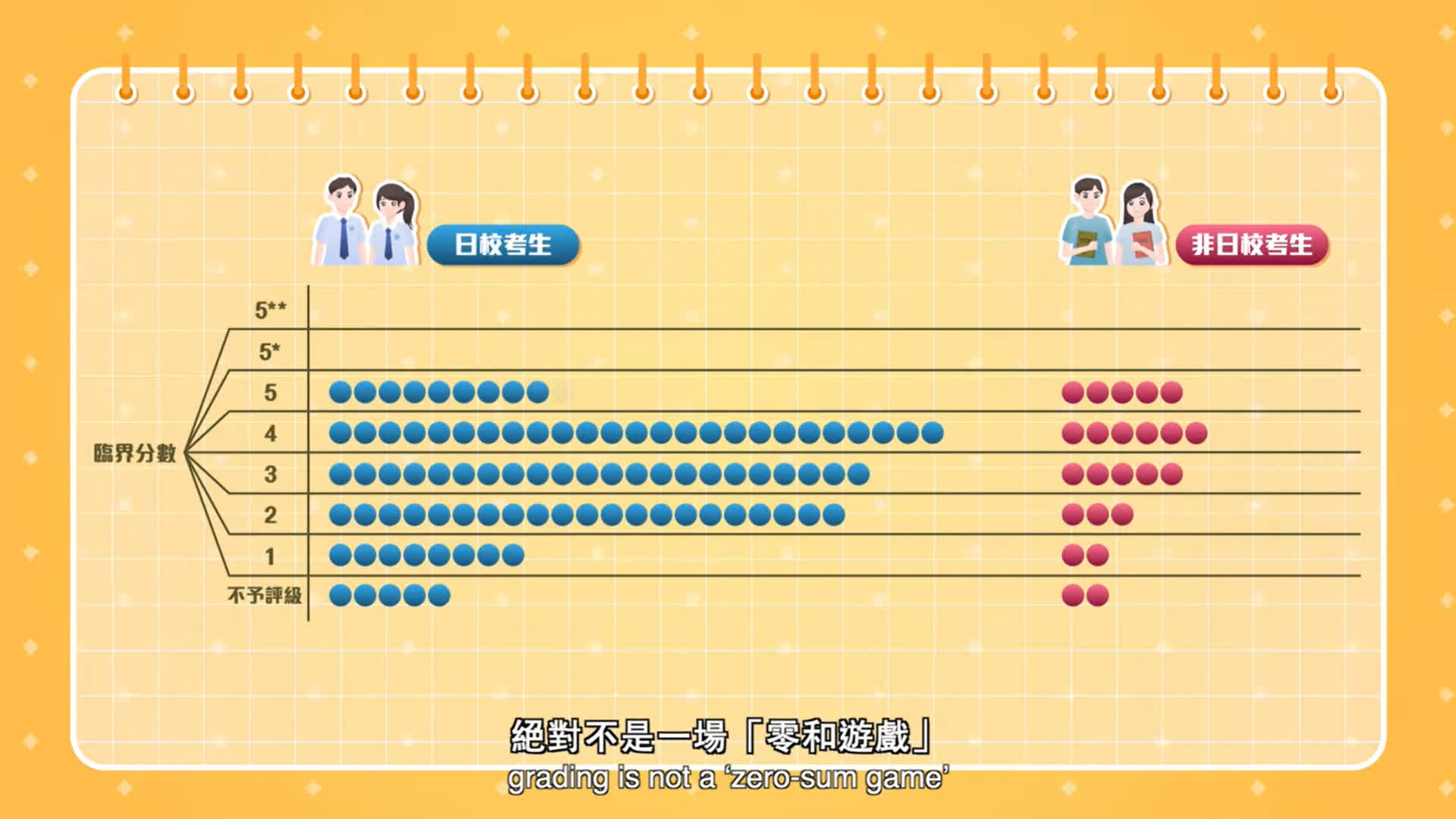 另外考評局又表示,留意到有同學面對近年DSE考生人數回升,擔憂或會令他們的成績受到影響。為解答疑問,該局製作了全新的動畫短片,由「SRR達人」帶大家探索1至5**級的評級過程,深入淺出地介紹DSE的水平參照成績匯報制度,並解釋DSE如何以日校考生的成績數據進行評級,令日校考生的等級,不會受其他考生的人數波動或表現所影響,打破「拉curve」誤解。立即「去片」!