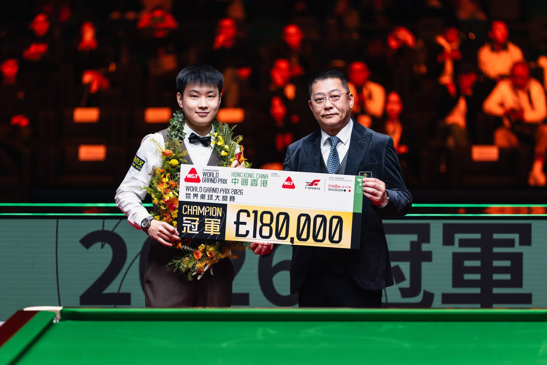 2月8日,2026年斯諾克世界大獎賽在香港啟德體育園圓滿落幕。趙心童以10:6戰勝張安達,首次奪得世界大獎賽冠軍,成為該賽事歷史上的首位中國冠軍,這也是趙心童個人第四個排名賽冠軍。從包攬四強到奪冠,彰顯了中國斯諾克選手在世界頂級競賽中的強大實力。金利來集團主席曾智明親自為冠軍趙心童頒獎。