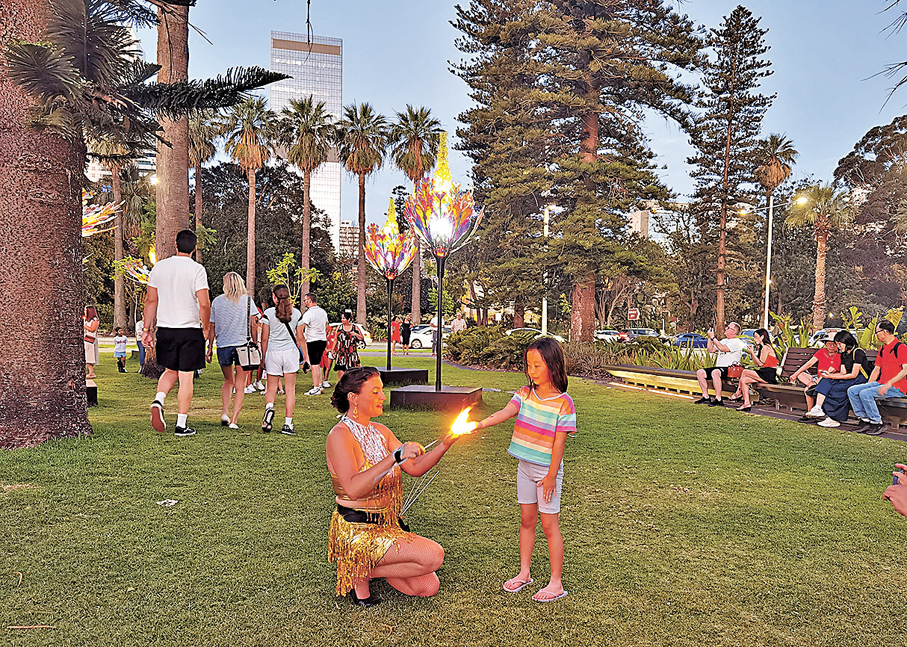 聖誕節那幾天的經歷,尤其讓人感觸。以前無論在歐洲還是香港,聖誕節都是冬天過的。為了更好體會夏日聖誕,我在內地就請朋友做了相應的行程安排。沒想到,他們的聖誕節那麼安靜,那麼平常,完全不同於我們的春節。從平安夜開始,連續三天,每隔一兩個小時,就有一場彌撒在或大或小、或古老或新式的教堂舉行。有教派內部的,有面向公眾的,有親子家庭的,在一絲不苟的儀式中,每場彌撒都透出肅穆莊重的氣氛,虔敬而內省。與此同時,在水邊草坪,各種聚會照常舉行。戶外燒烤台上的特色美食,形形色色器皿裏的各種美酒,身穿比基尼的不同年齡段美女,天鵝河半江瑟瑟半江紅的美景……構成了一幅異域風情畫。或一家老小,或一對情侶,或一眾朋友,席地而坐,彼此相安無事。偶有玩雜耍的藝人,以各種把戲滿足着兒童的好奇心。聖誕期間全民放假,本地人開的商店、餐廳是不營業的,中餐館的生意便異常火爆。