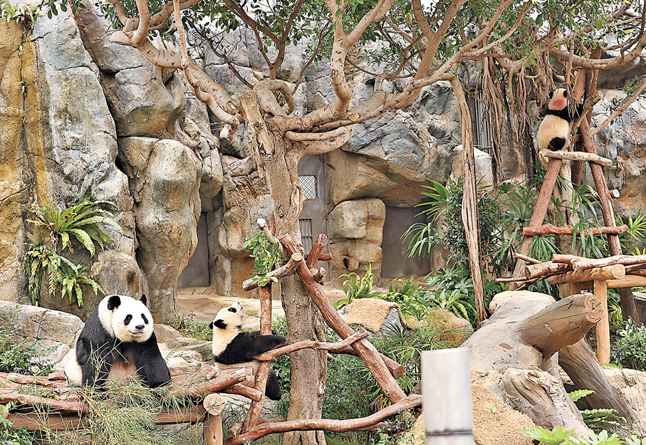 在成長過程中,這對姐弟的變化令人驚嘆。去年2月,海洋公園將牠們的成長記錄剪輯成影片播出,回顧「加加」及「得得」由出生時鮮少毛髮到「黑白分明」。海洋公園動物及保育部助理館長胡綺琪分享,去年1月開始,每日安排一定時間讓牠們進入草地以適應環境,但起初護理團隊略感吃力,因為兩姐弟都非常活躍,令大家應接不暇,不斷「爬高爬低」,護理員十分擔心牠們會受傷。在聽取中國大熊貓保護研究中心專家的意見後,團隊學會「放手」,讓牠們通過攀爬鍛煉能力。適當的跌倒,竟是寶貴的學習經驗。
