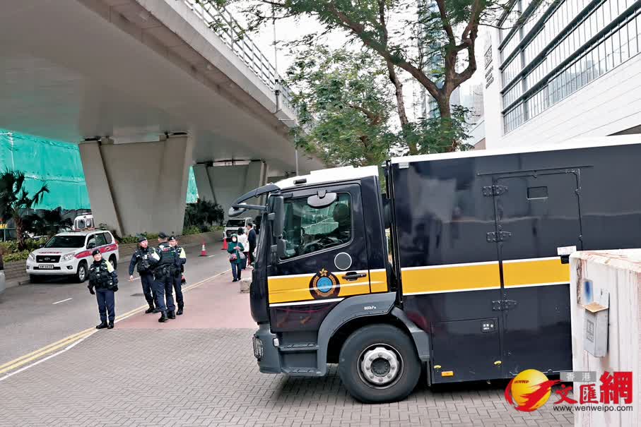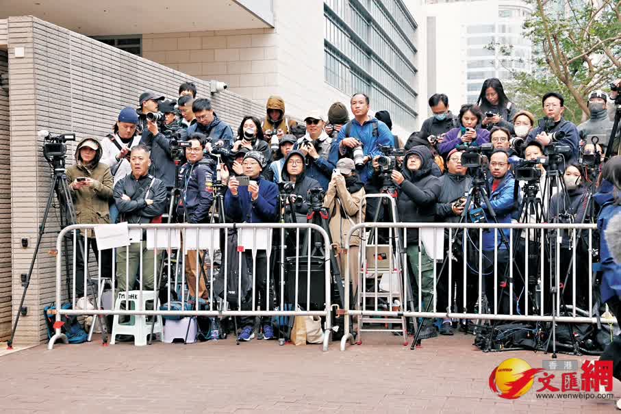 法庭早前宣布於昨日上午10時在西九龍裁判法院(暫代高等法院)開庭判刑。香港文匯報記者昨日在現場觀察發現,昨日上午8時,已有約100名市民到法庭外有序排隊輪候旁聽籌,包括支持依法嚴懲黎智英的市民,而法庭外記者區亦站滿逾百名記者。