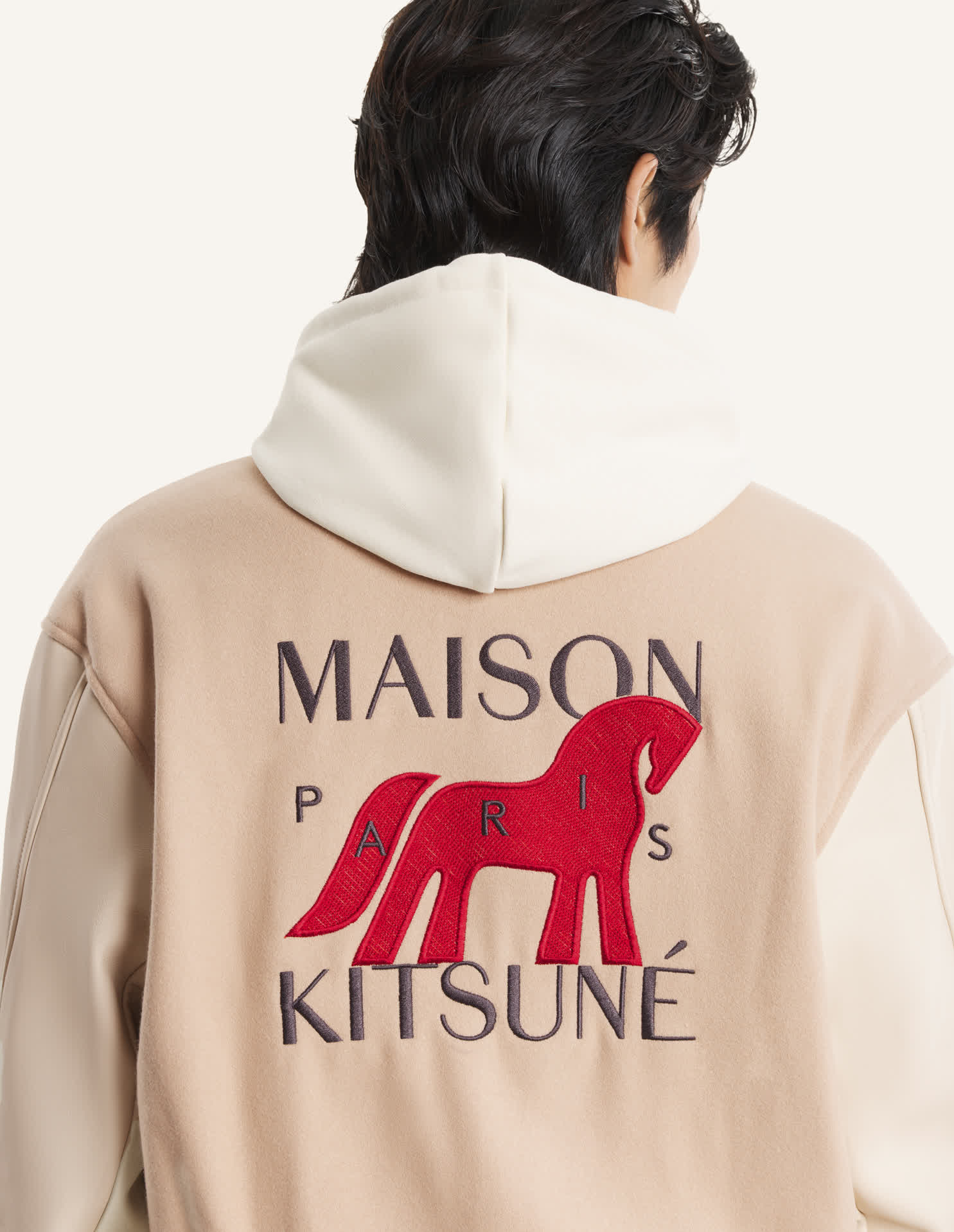 Maison Kitsuné為新春造型帶來法式優雅,推出以精緻「文趣馬駒」為主題的限定系列,設計靈感源自2026春夏的「藝趣狐狸」意象 ,系列採用淡雅米色為主調,並巧妙加入節慶紅色皮革細節與經典狐狸頭標誌,演繹現代節日美學 。設計以靈動的筆觸勾勒動物剪影,並以生動的字符作裝飾,將新春氣息融入法式文藝格調之中,使歡愉的圖案活現於服飾之上,點亮新春氣氛。系列涵蓋短袖T恤、連帽衛衣、針織開襟衫及學院風外套等經典款式,同時提供Tote Bag等實用配飾,為新春衣櫥提供多元化的服飾選擇。