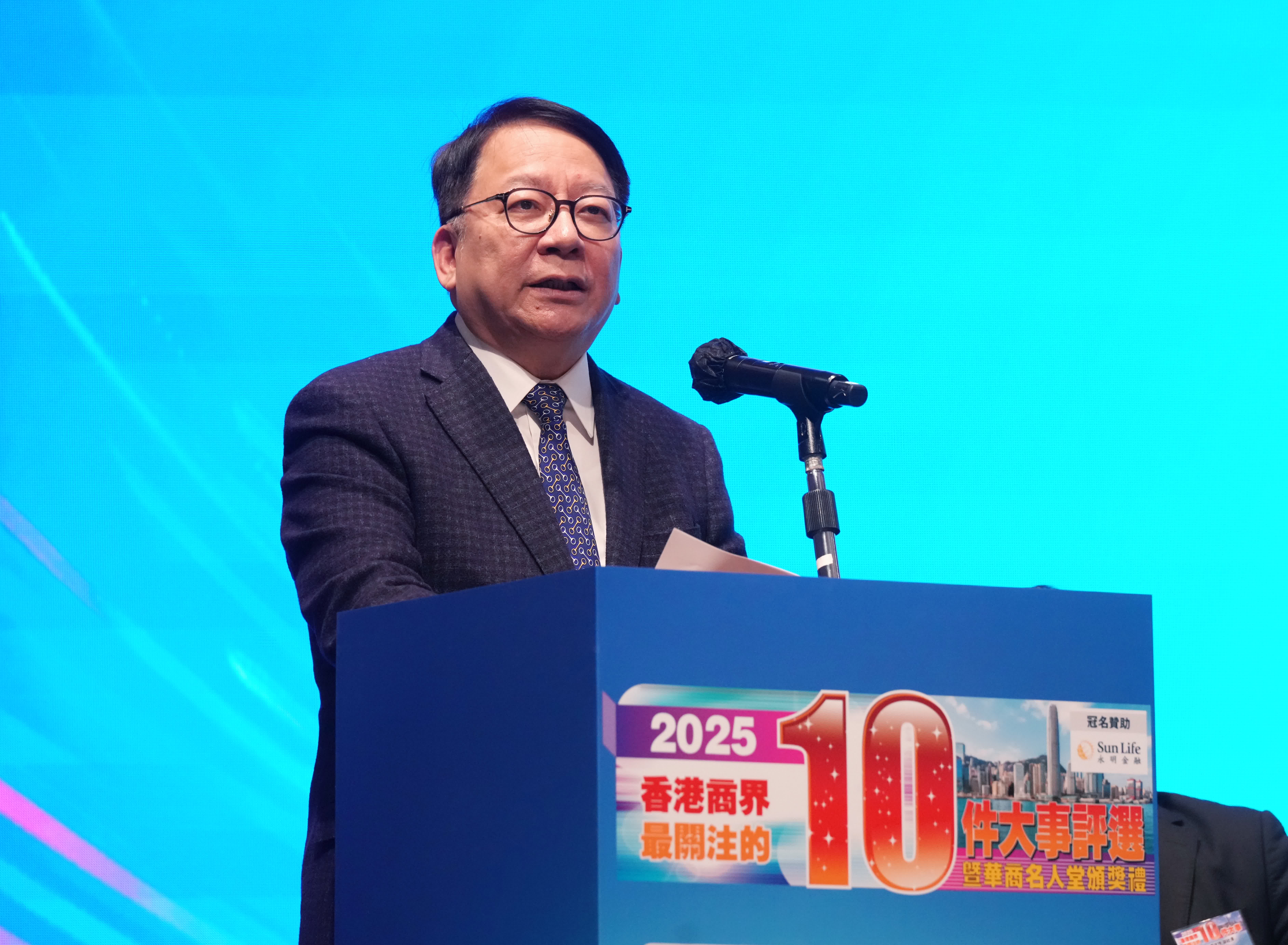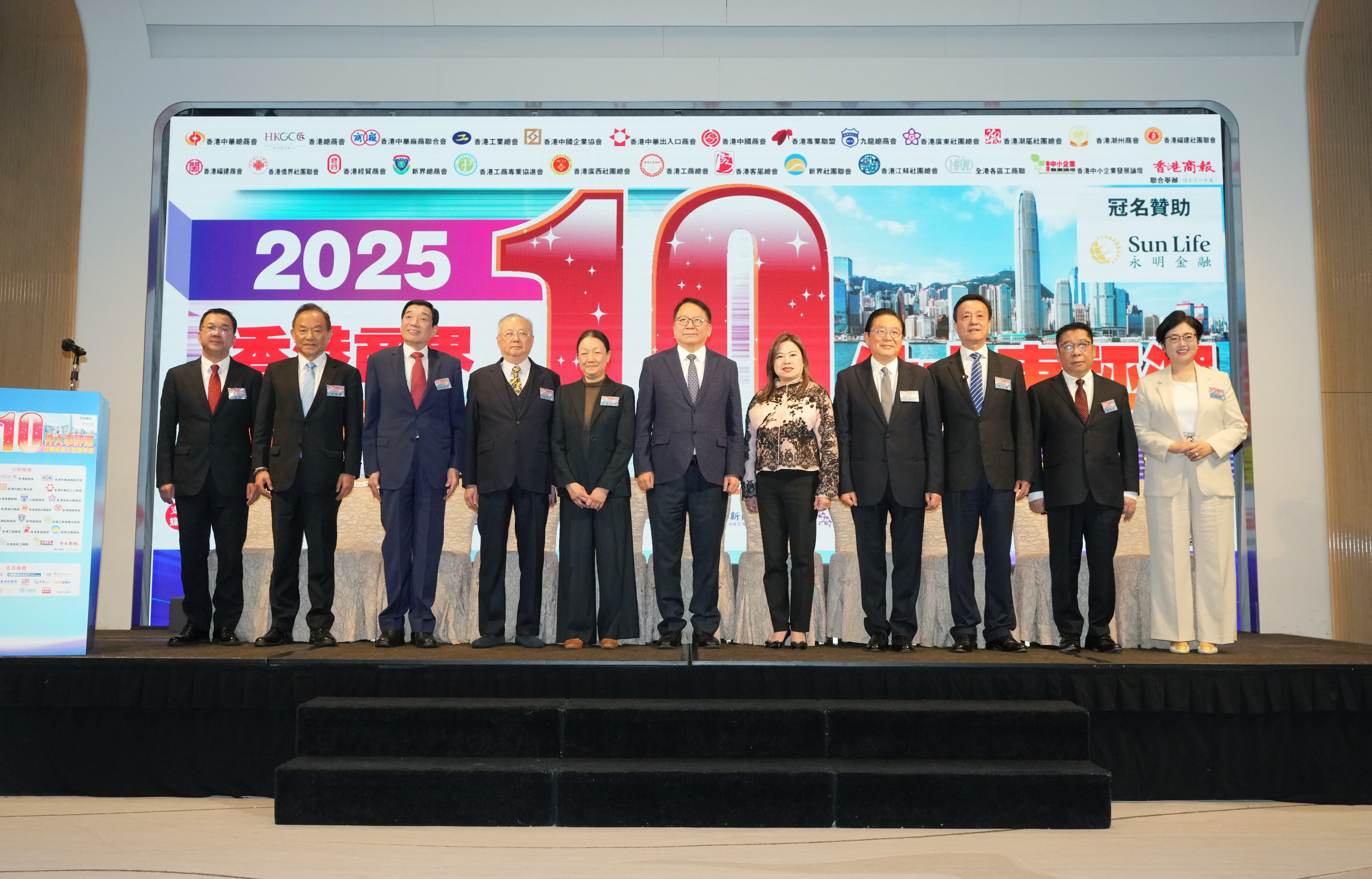 根據大會公布,2025年最受香港商界關注的十件大事,首要大事即為「二十屆四中全面審議通過十五五規劃建議」,其次是「大埔五級火災,香港眾志成城有力有效應對」,排第三位是「第8屆立法會選舉圓滿如期舉行」。