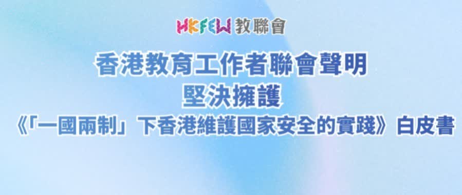 當前香港正處於由治及興的關鍵時期。本會呼籲全港教育工作者認真學習白皮書精神,堅決防範任何危害國家安全的言行侵入校園。我們將配合特區政府完善國家安全教育體系,加強師資培訓與教學資源建設,引導青少年成為「一國兩制」的堅定守護者、國家安全的自覺維護者與香港未來的積極建設者。
